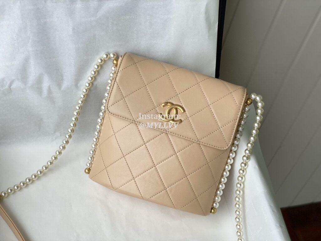 Top Quality Version:MYLLVV » Chanel Diamond Plaid Cowhide Small Pearl Hobo Bag Apricot With Gold AS2503