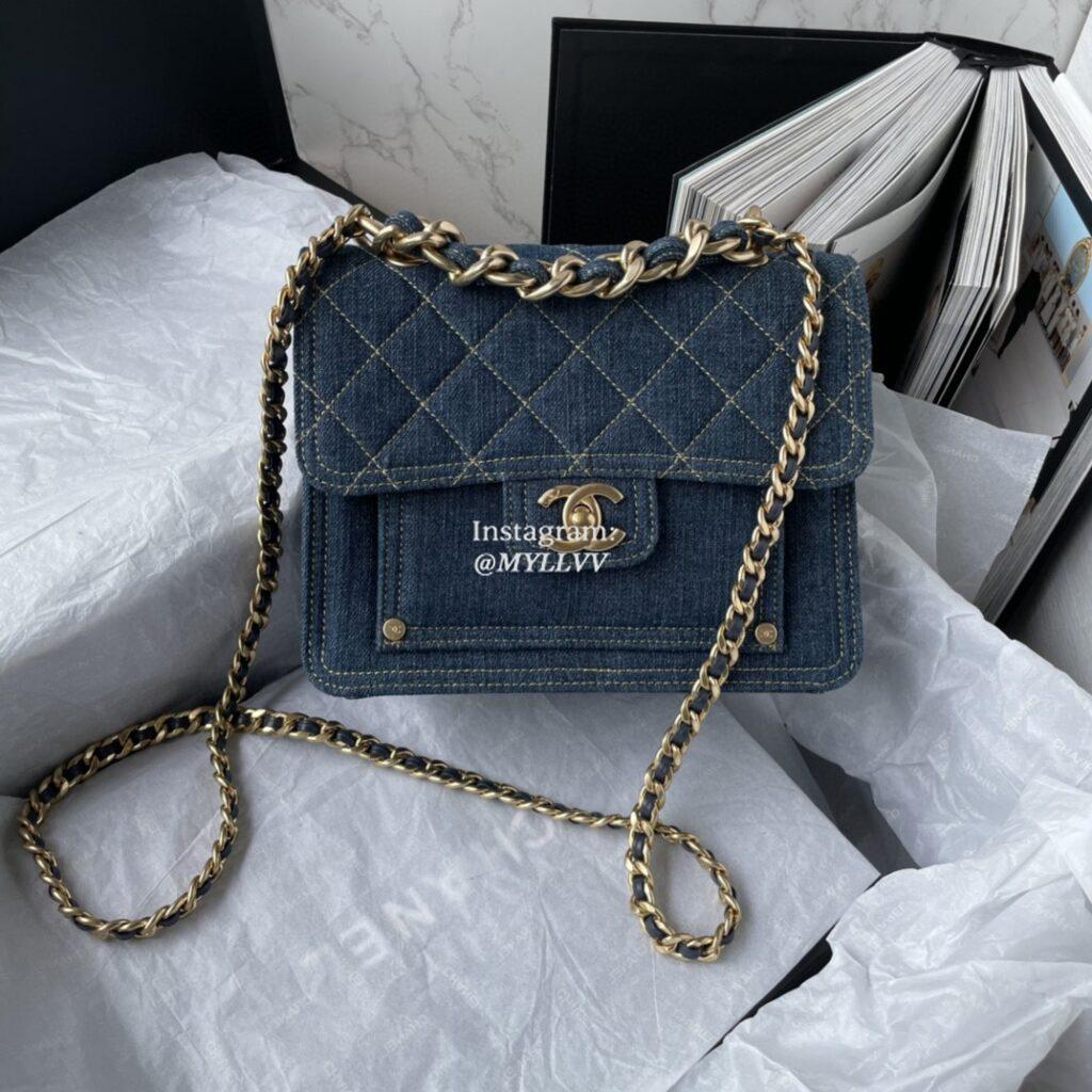 Top Quality Version:MYLLVV » Chanel Diamond Plaid Denim Handle Flap Bag Blue With Gold AS3932