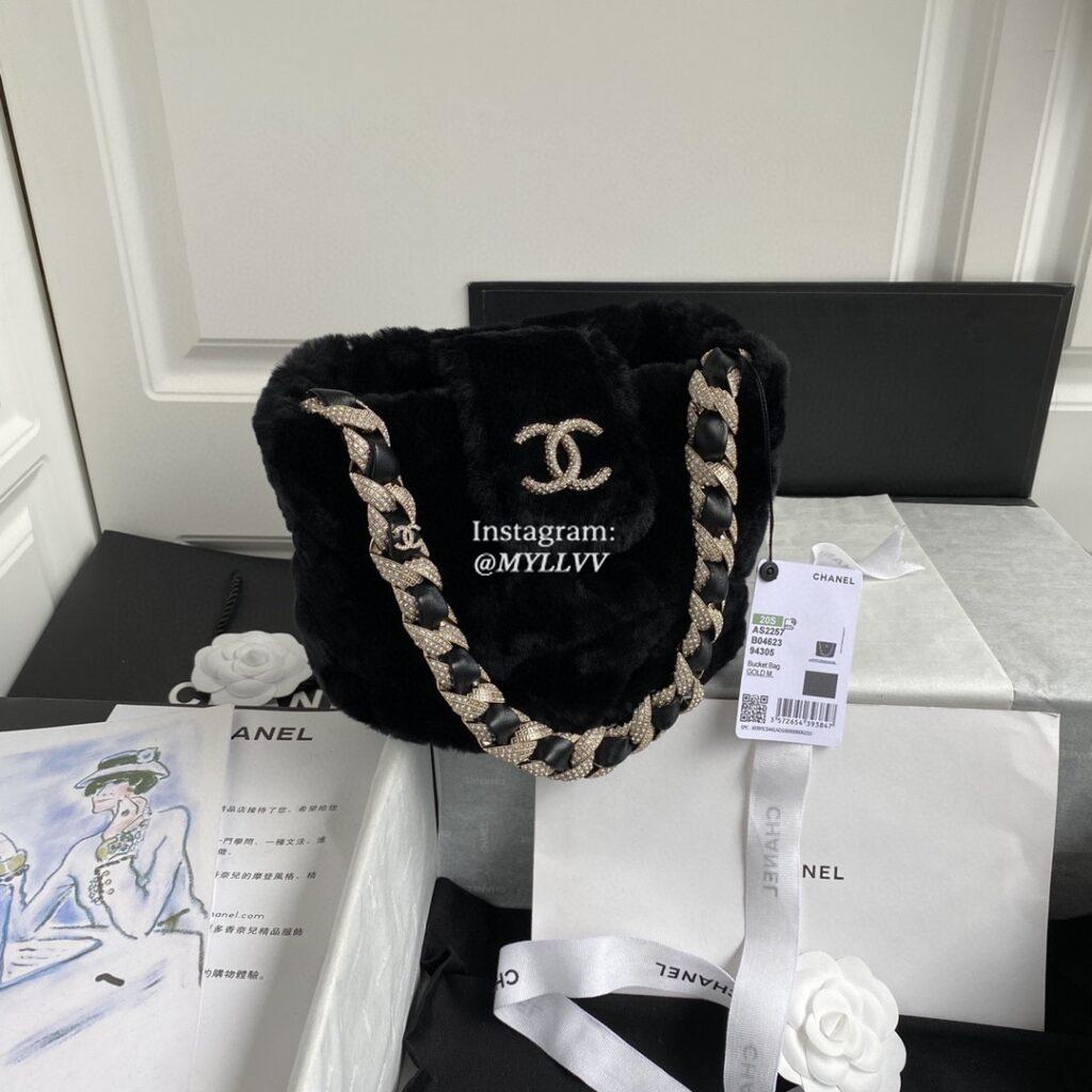 Top Quality Version:MYLLVV » Chanel Diamond Plaid Diamond Wool Bucket Bag Black With Gold AS2257