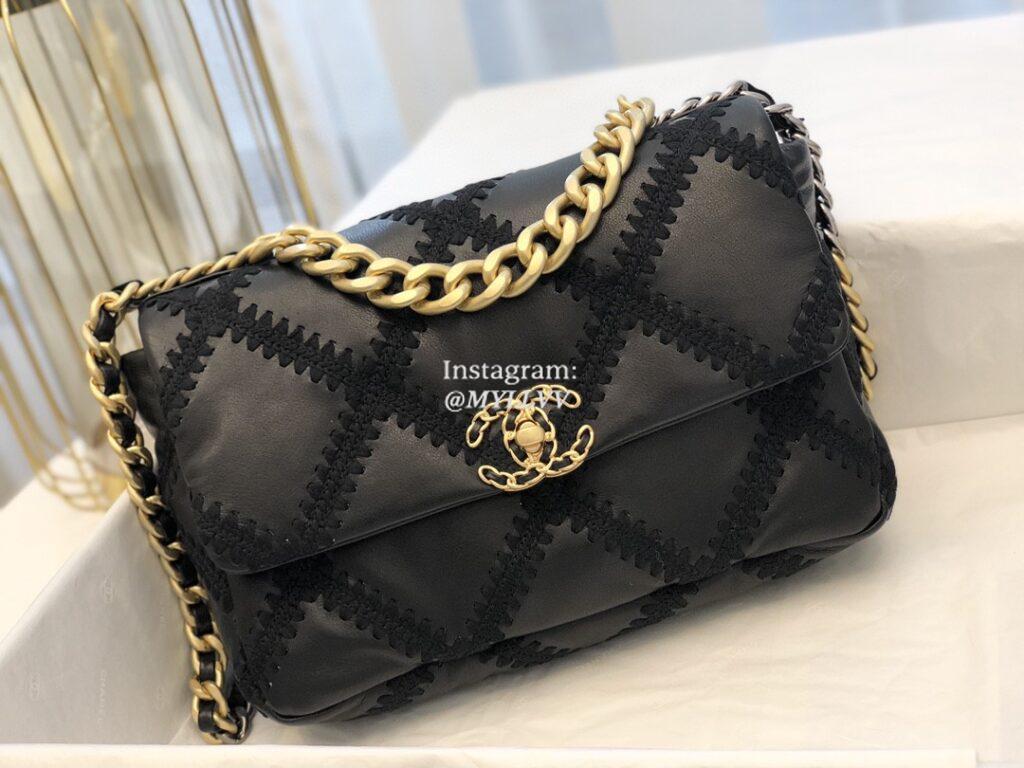 Top Quality Version:MYLLVV » Chanel Diamond Plaid Embroidery Cowhide Shoulder Bag Black With Gold AS1161