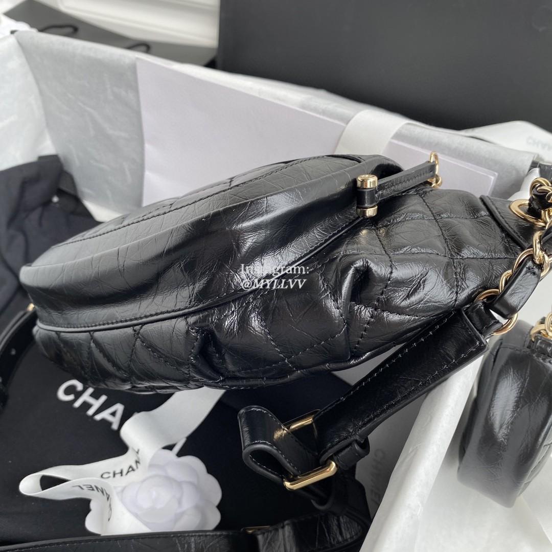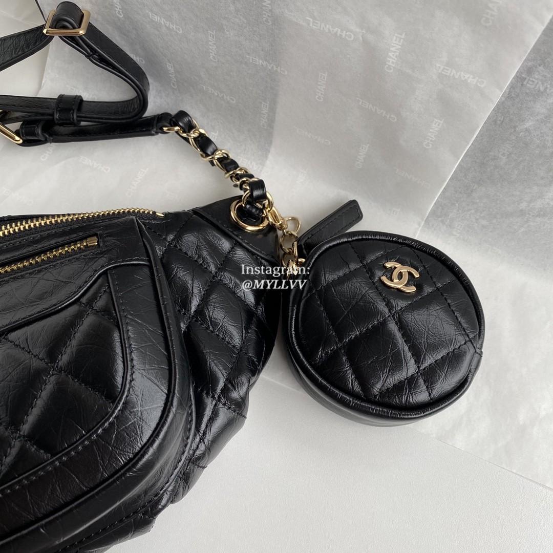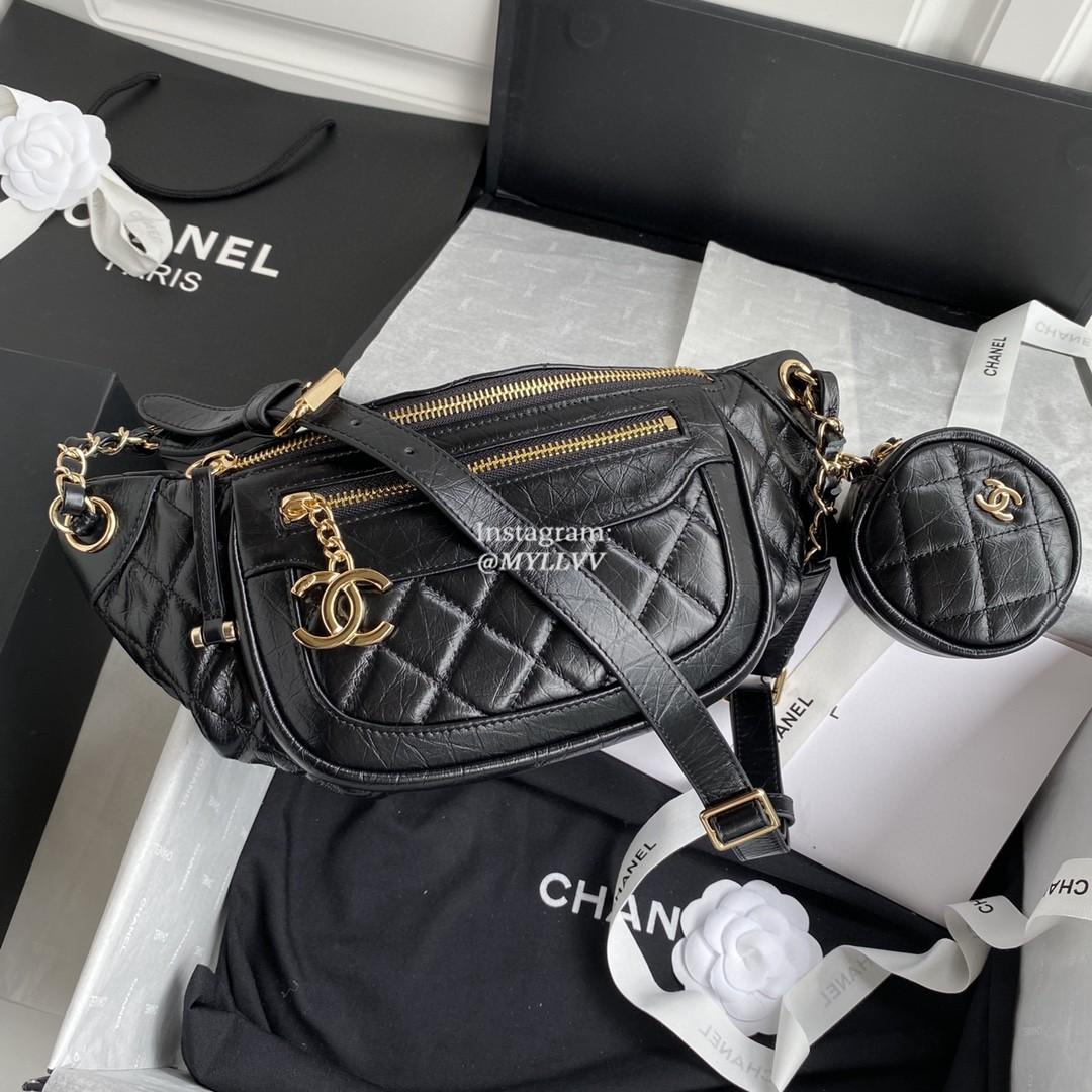 Top Quality Version:MYLLVV » Chanel Diamond Plaid Fold Cowhide Pocket Bag Black With Gold AS1077