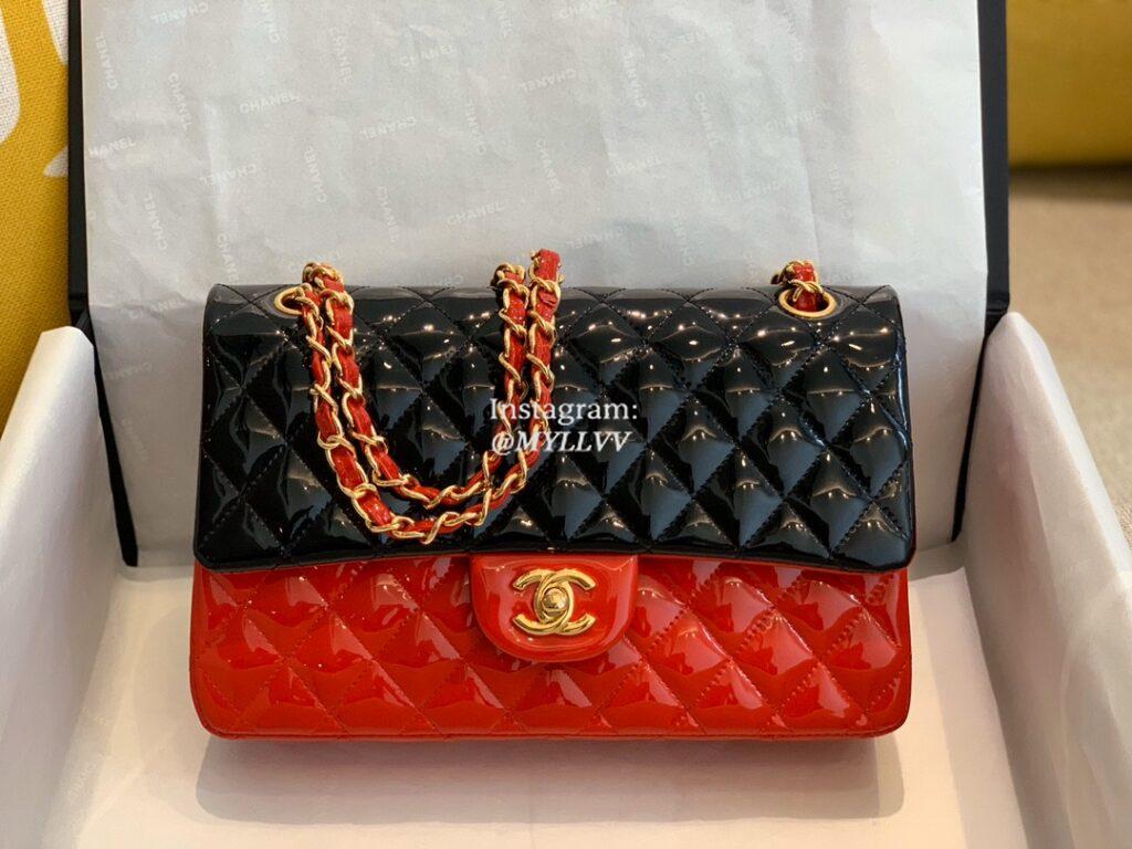 Top Quality Version:MYLLVV » Chanel Diamond Plaid Patent Leather Classic Flap Bag Black Red With Gold A01112