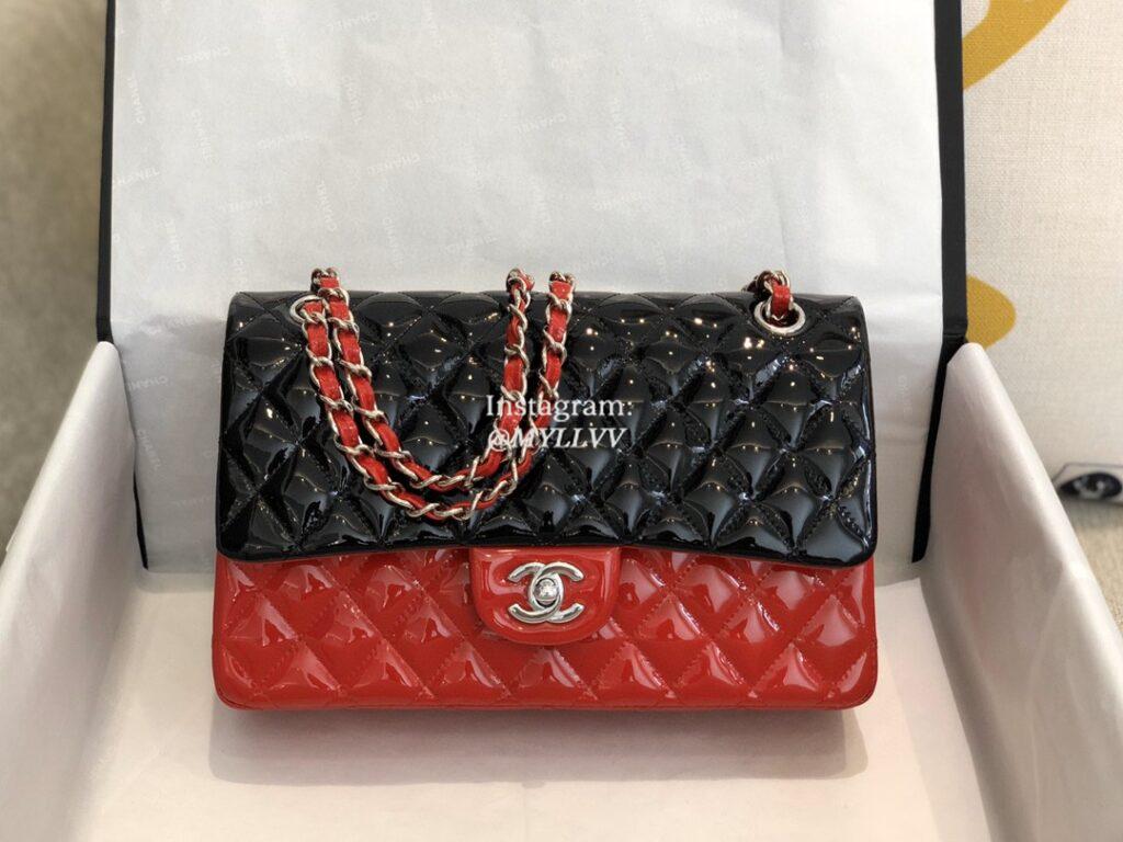 Top Quality Version:MYLLVV » Chanel Diamond Plaid Patent Leather Classic Flap Bag Black Red With Sliver A01112