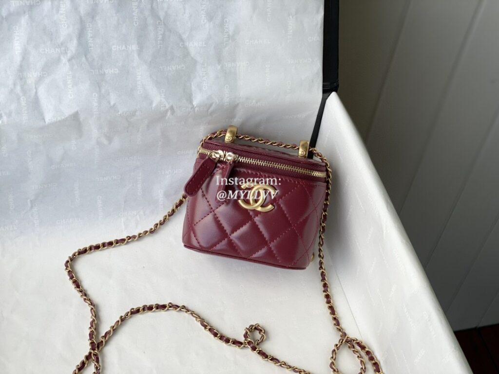 Top Quality Version:MYLLVV » Chanel Diamond Plaid Glossy Cowhide Mini Chain Bag Wine Red With Gold 81116