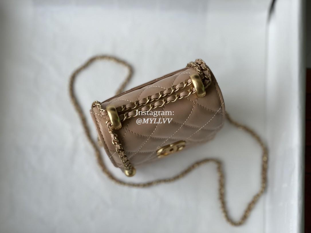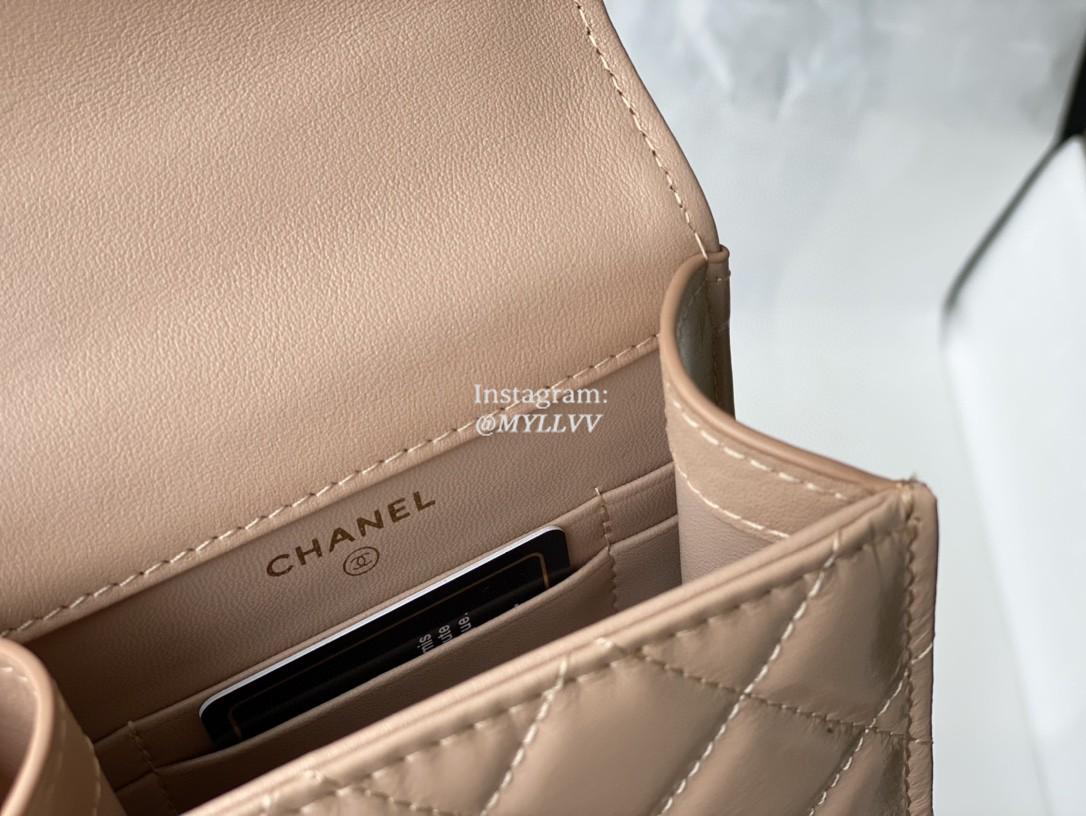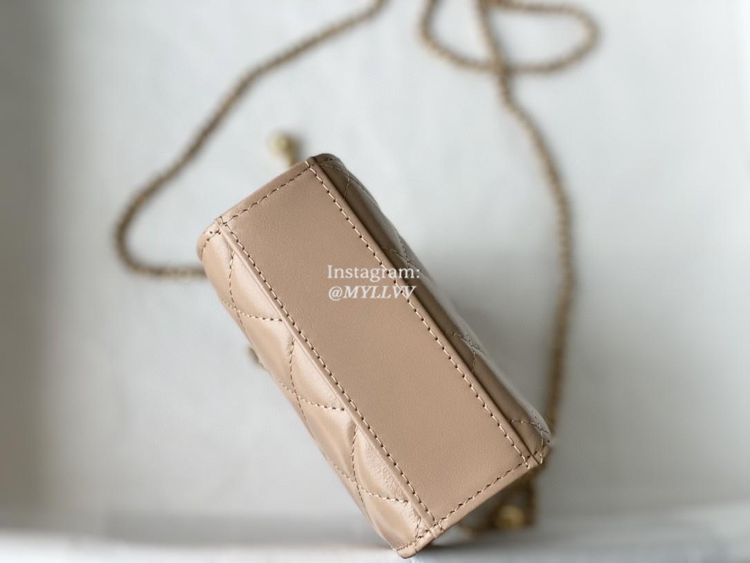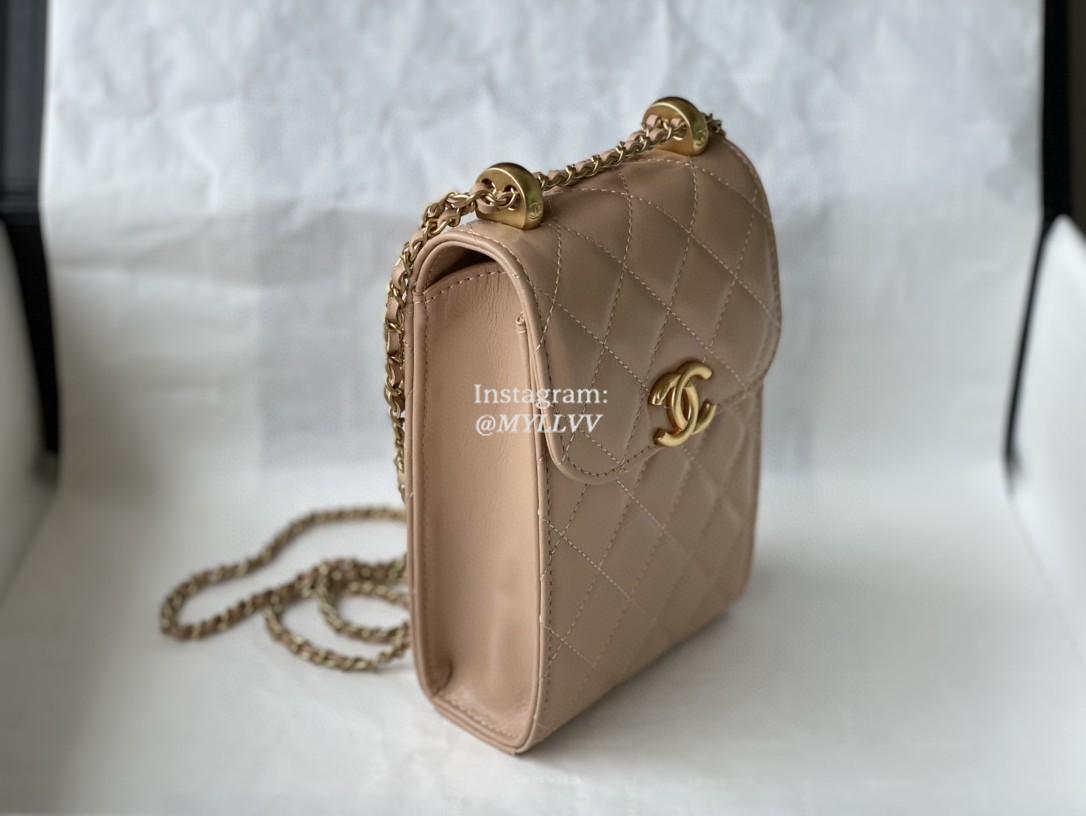 Top Quality Version:MYLLVV » Chanel Diamond Plaid Glossy Cowhide Phone Bag Apricot With Gold 81120