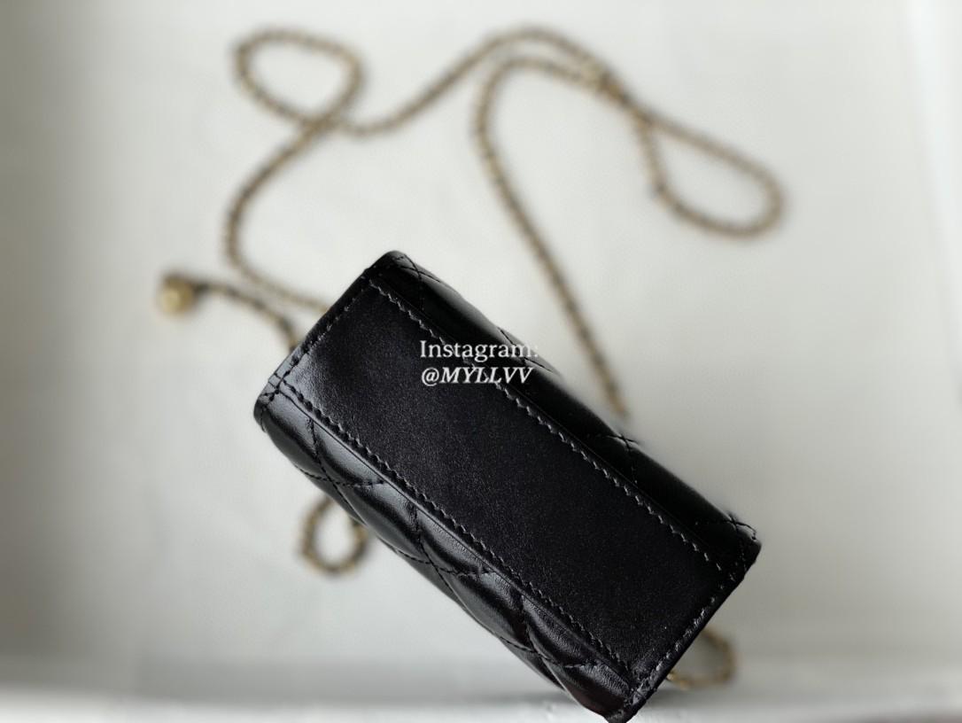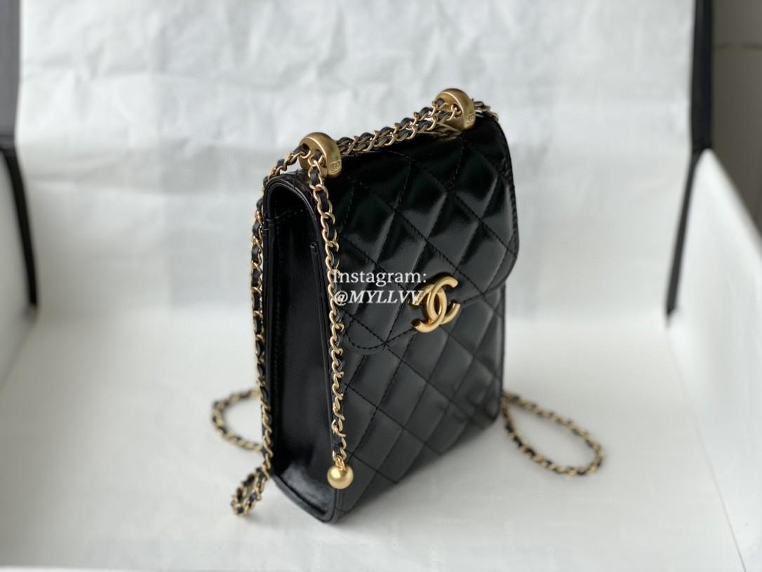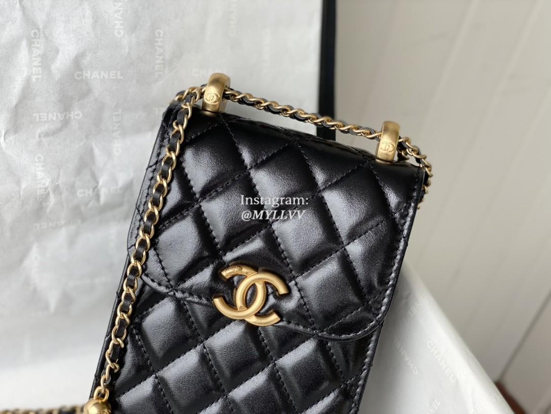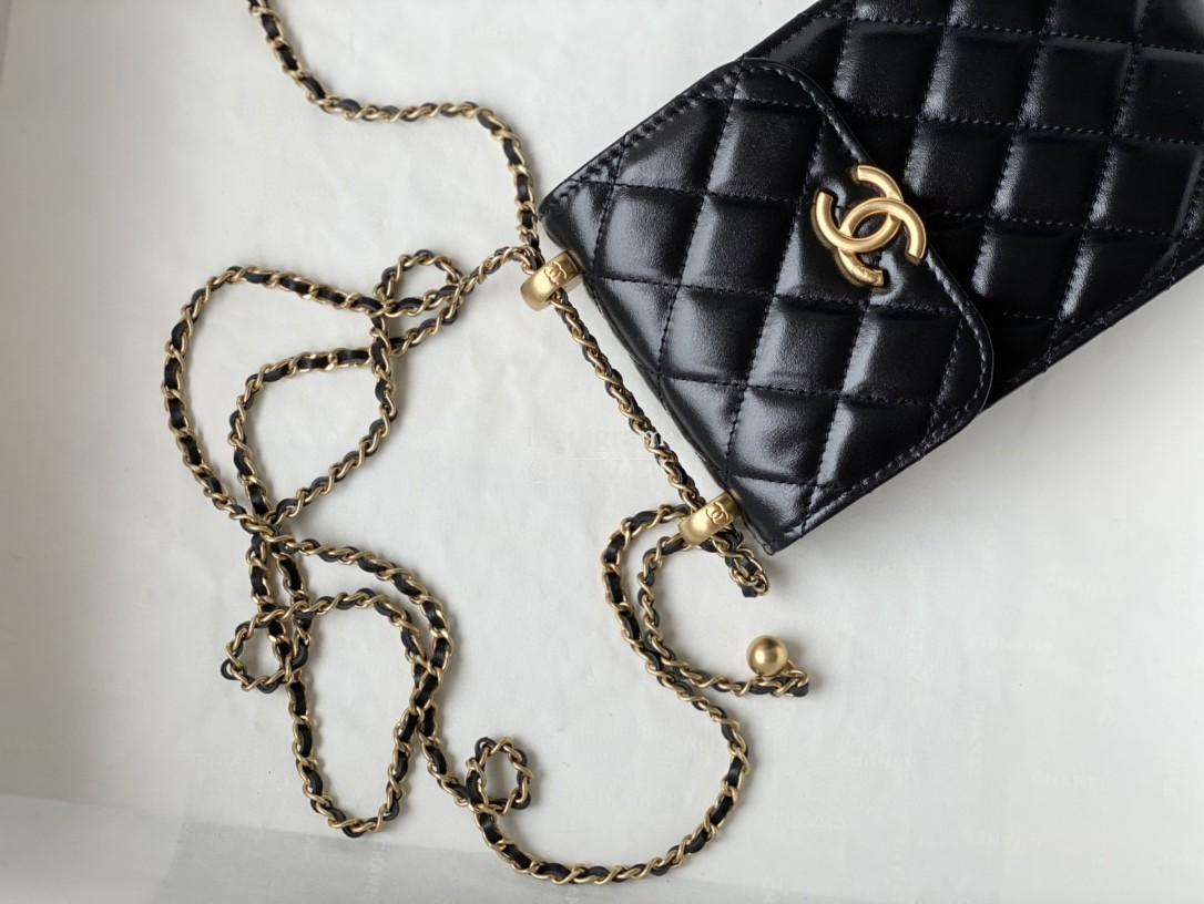 Top Quality Version:MYLLVV » Chanel Diamond Plaid Glossy Cowhide Phone Bag Black With Gold 81120