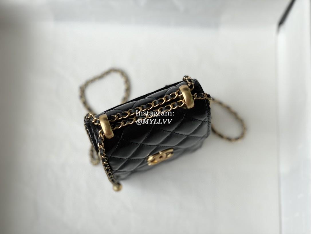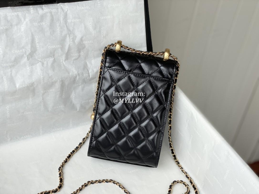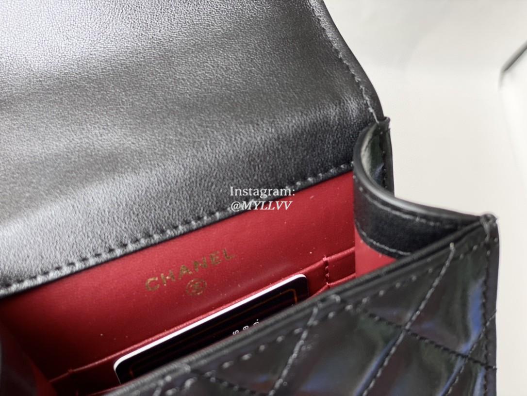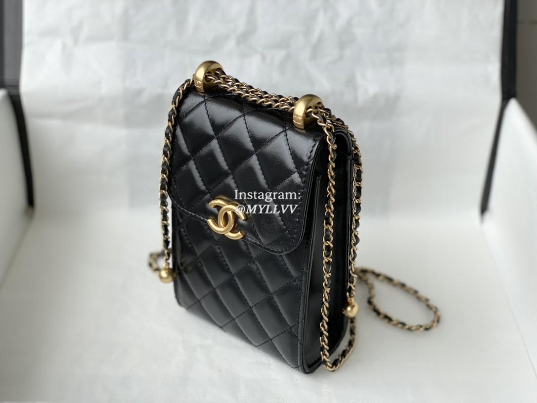 Top Quality Version:MYLLVV » Chanel Diamond Plaid Glossy Cowhide Phone Bag Black With Gold 81120