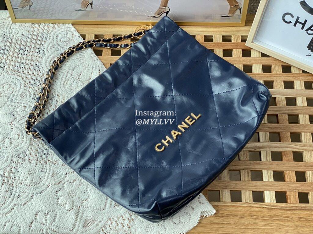 Top Quality Version:MYLLVV » Chanel Diamond Plaid Glossy Cowhide Shopping Bag Dark Blue With Gold 3260