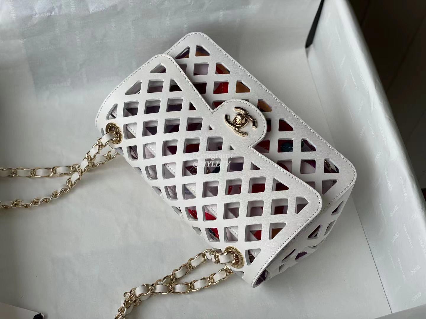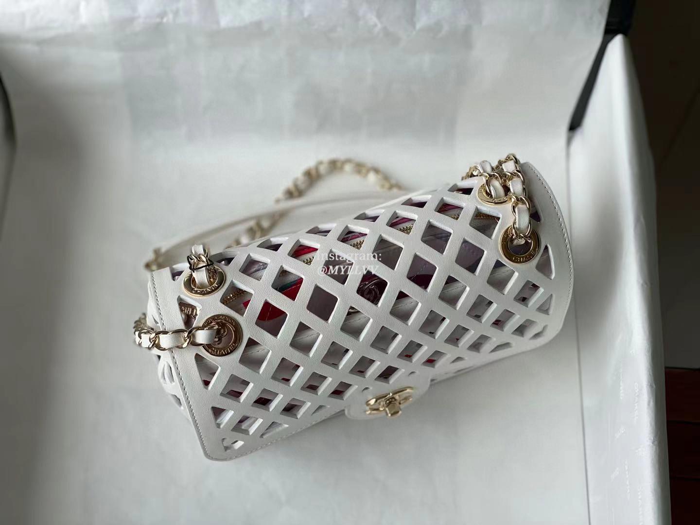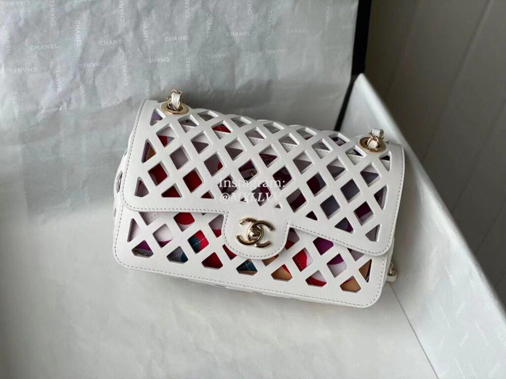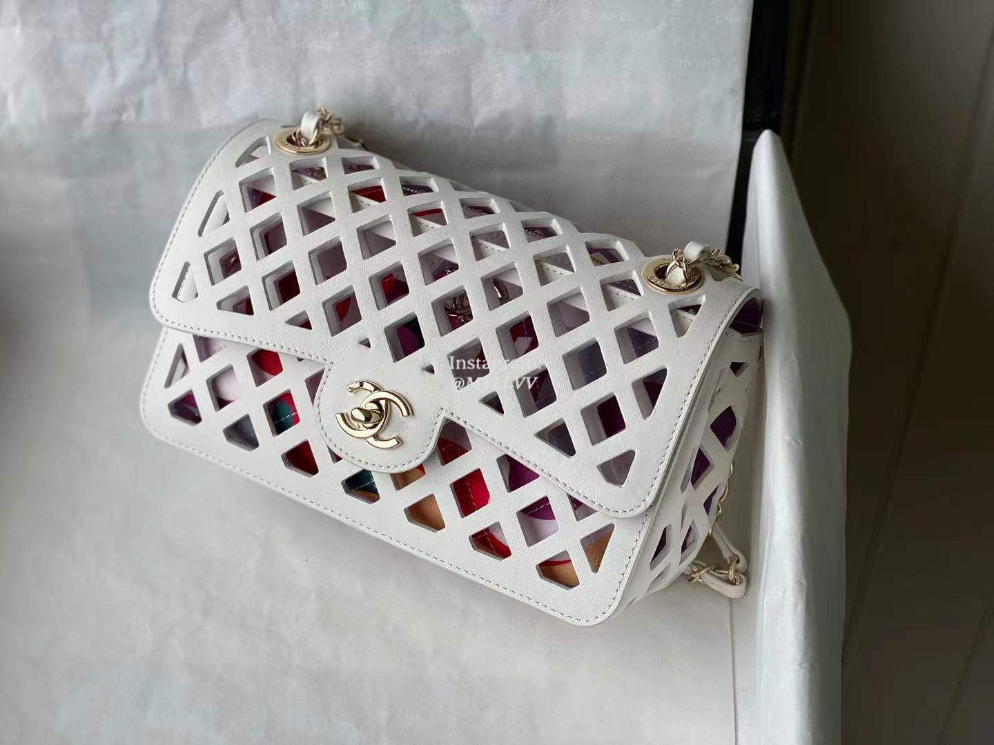 Top Quality Version:MYLLVV » Chanel Diamond Plaid Hollowed Out Cowhide Classic Flap Bag White With Gold 2370