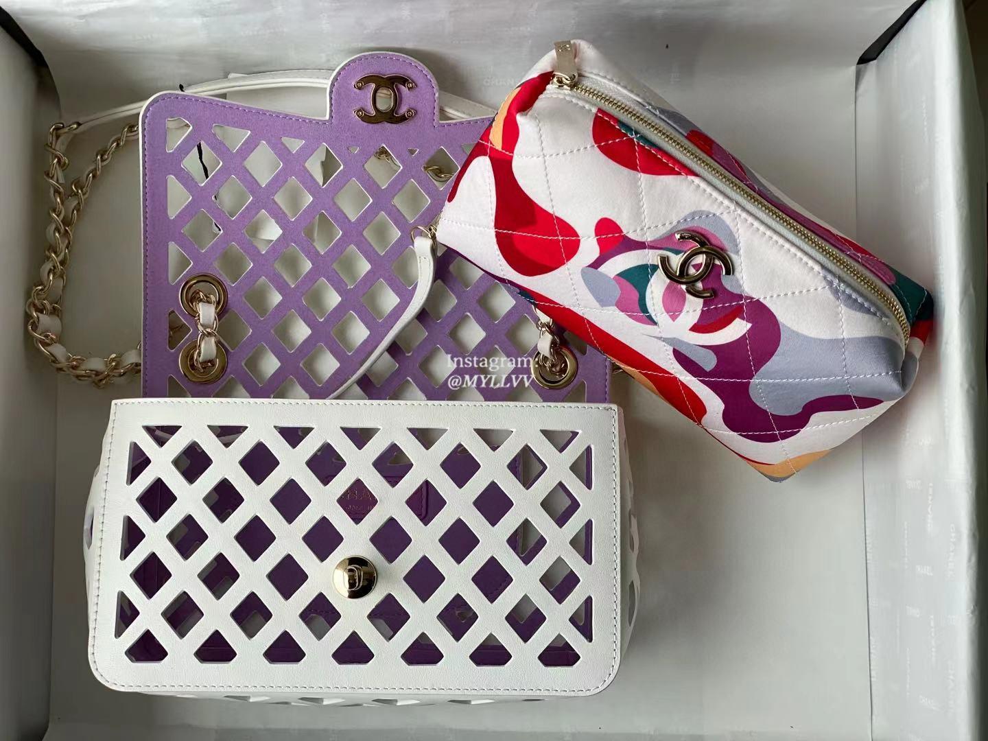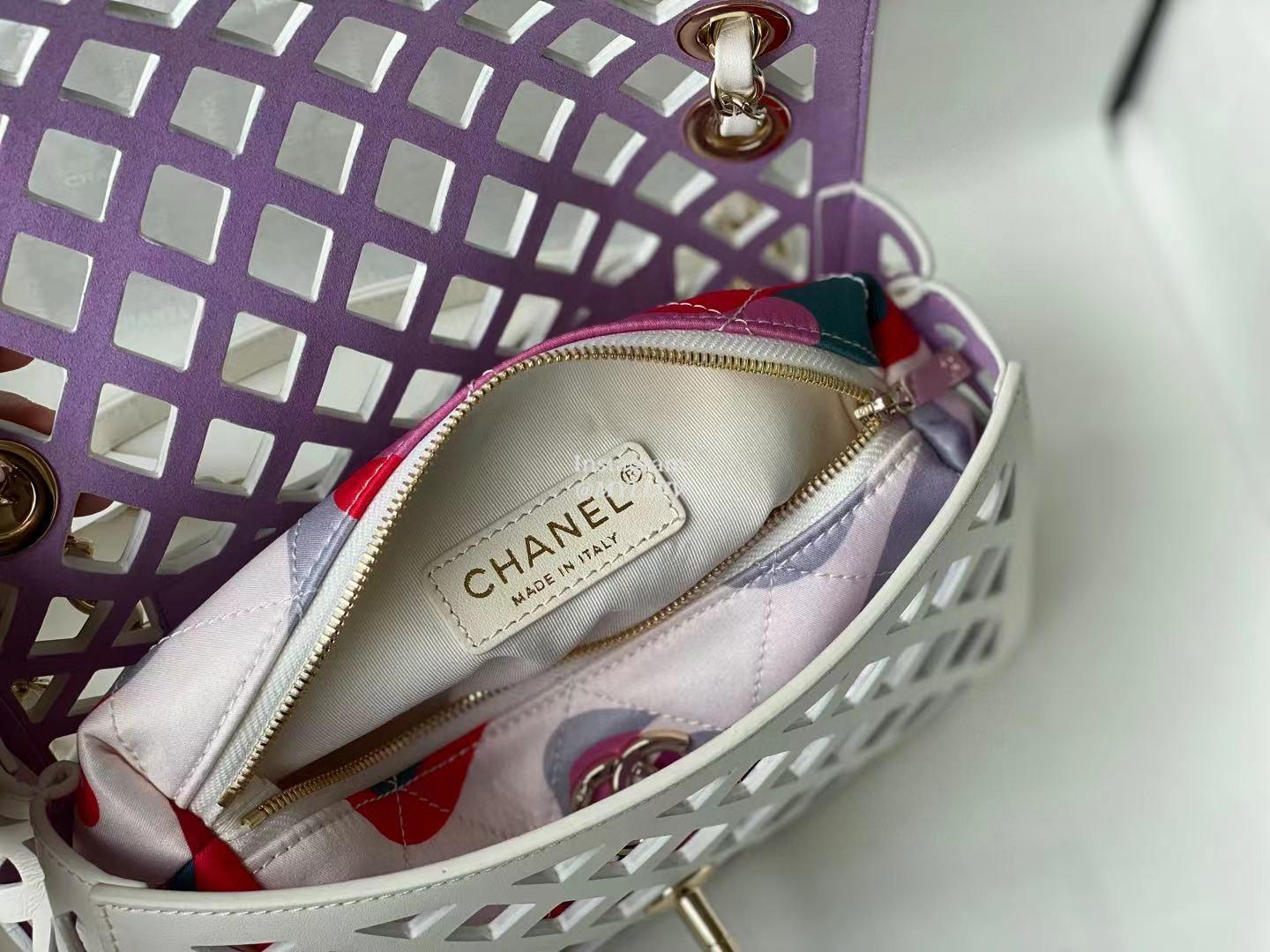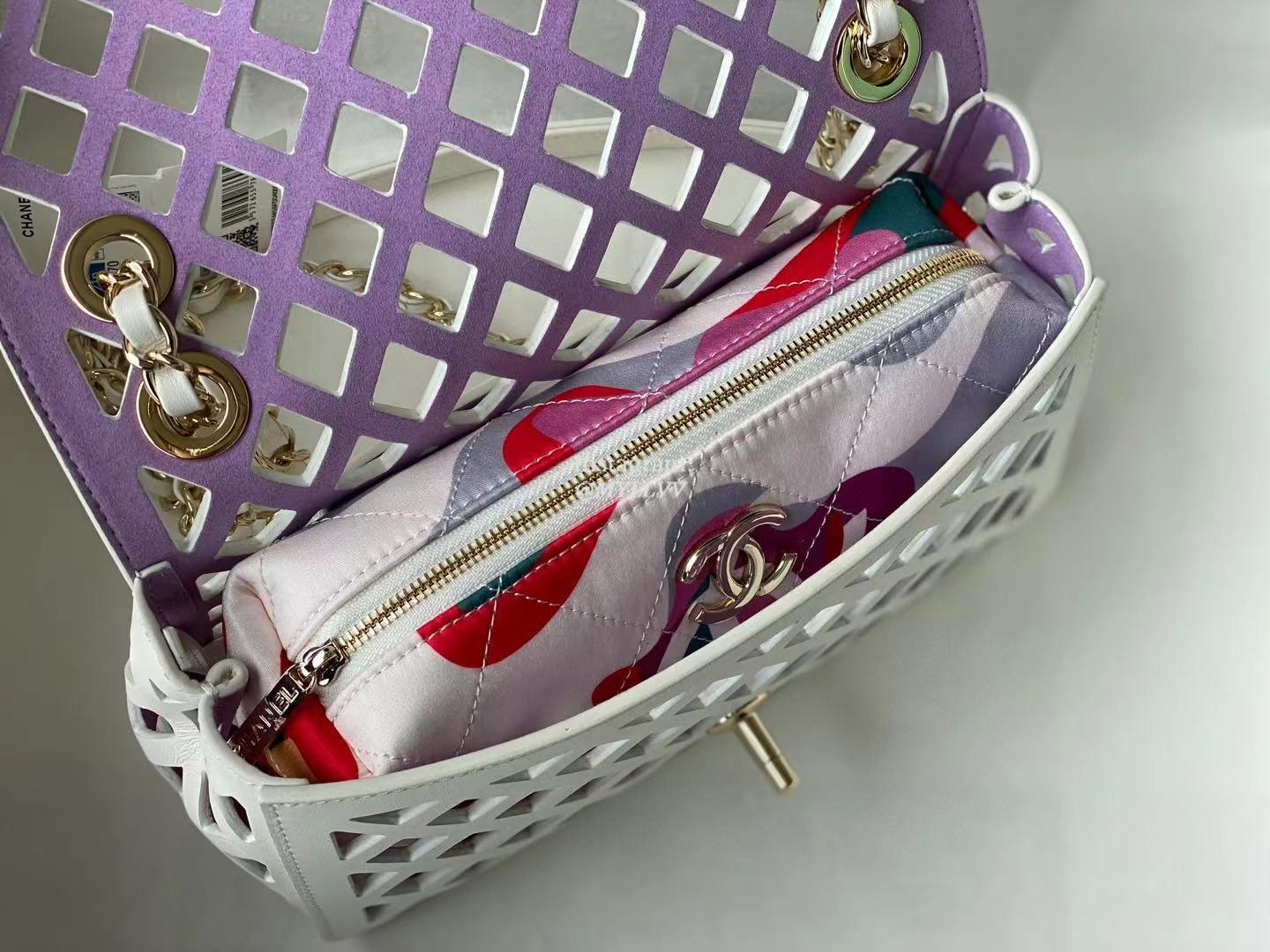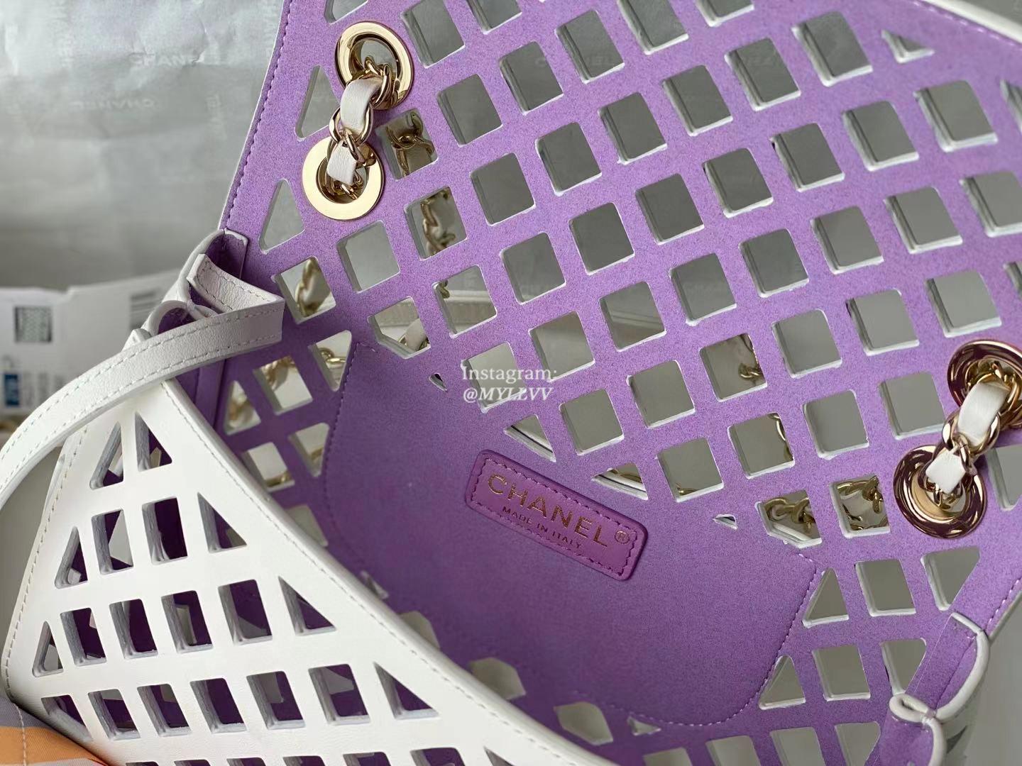 Top Quality Version:MYLLVV » Chanel Diamond Plaid Hollowed Out Cowhide Classic Flap Bag White With Gold 2370