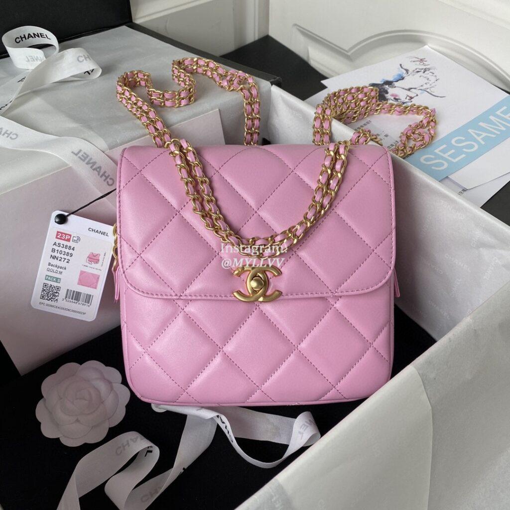 Top Quality Version:MYLLVV » Chanel Diamond Plaid Lambskin Ado Backpack Rose Red With Gold AS3884
