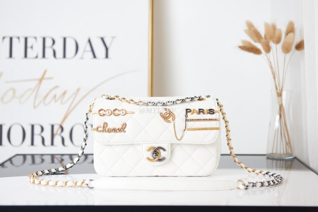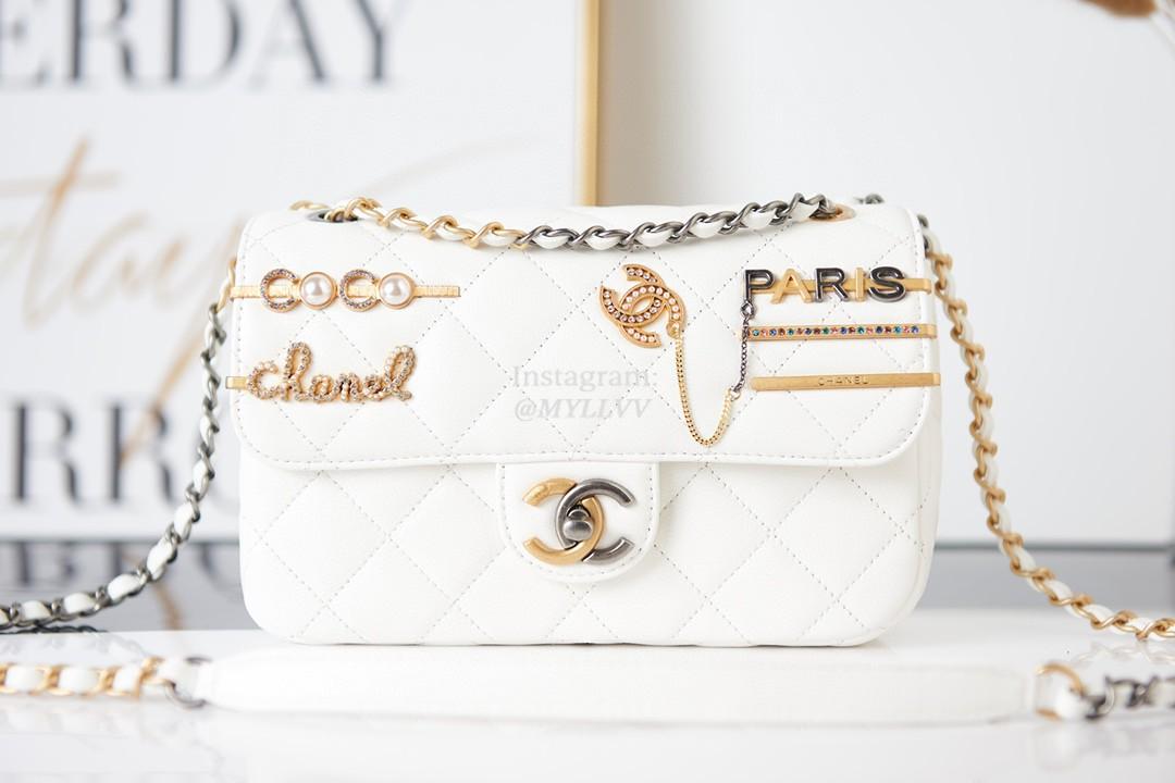 Top Quality Version:MYLLVV » Chanel Diamond Plaid Lambskin Badge Flap Bag White With Gold AS2978