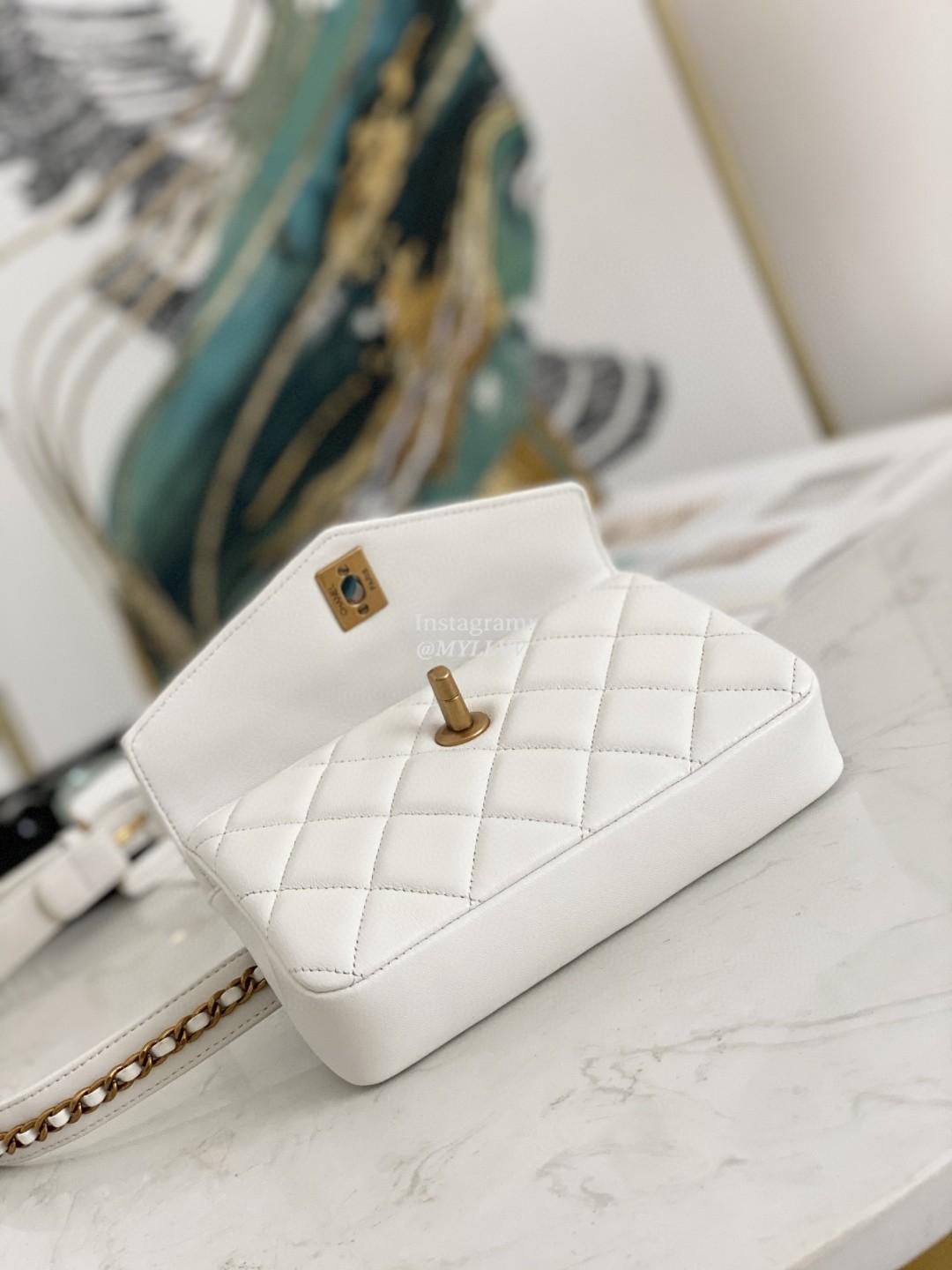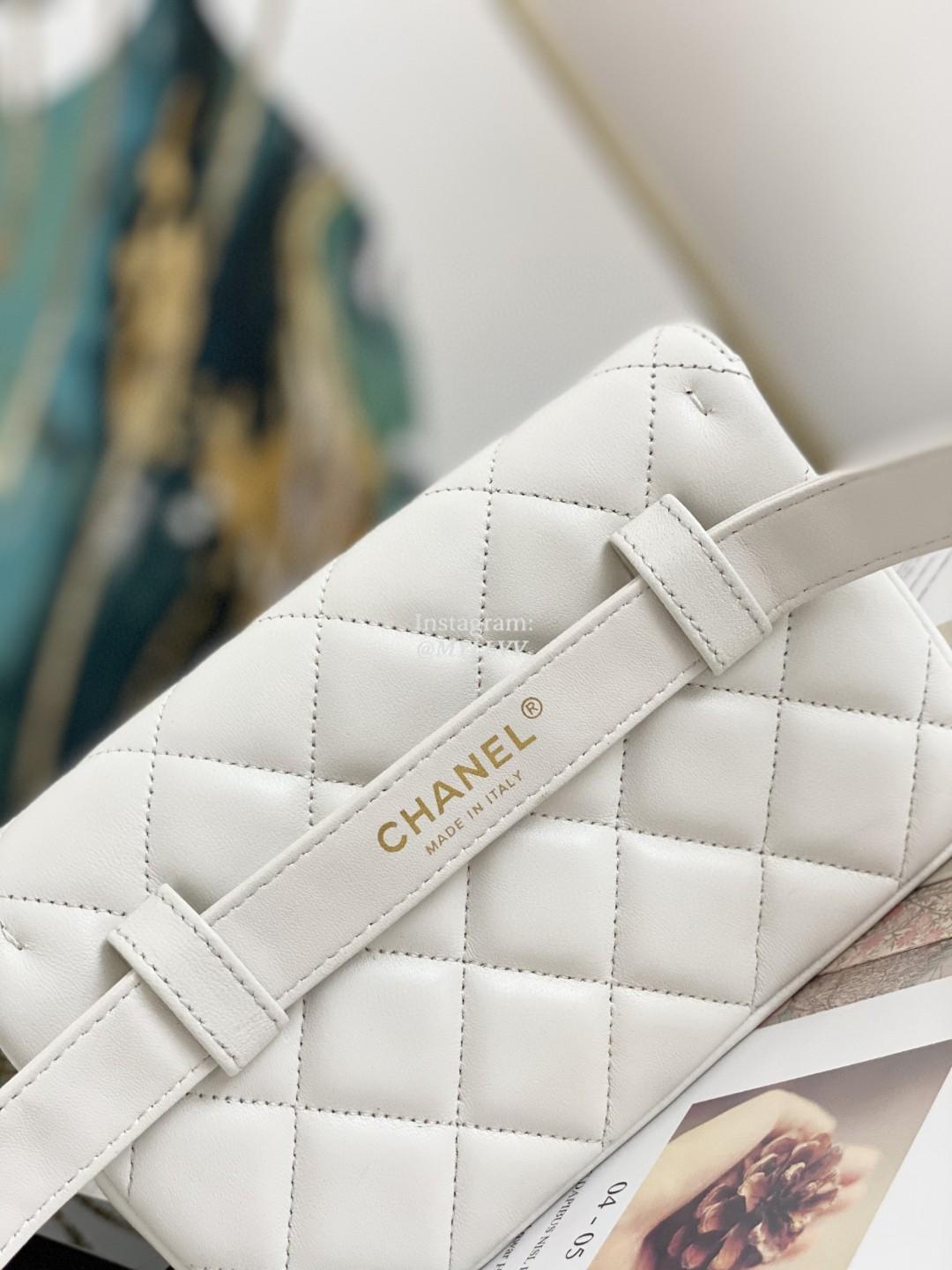 Dimension: 18.0 × 12.0 × 3.5 cm Top Quality Version:MYLLVV » Chanel Diamond Plaid Lambskin Belt Bag White 99009