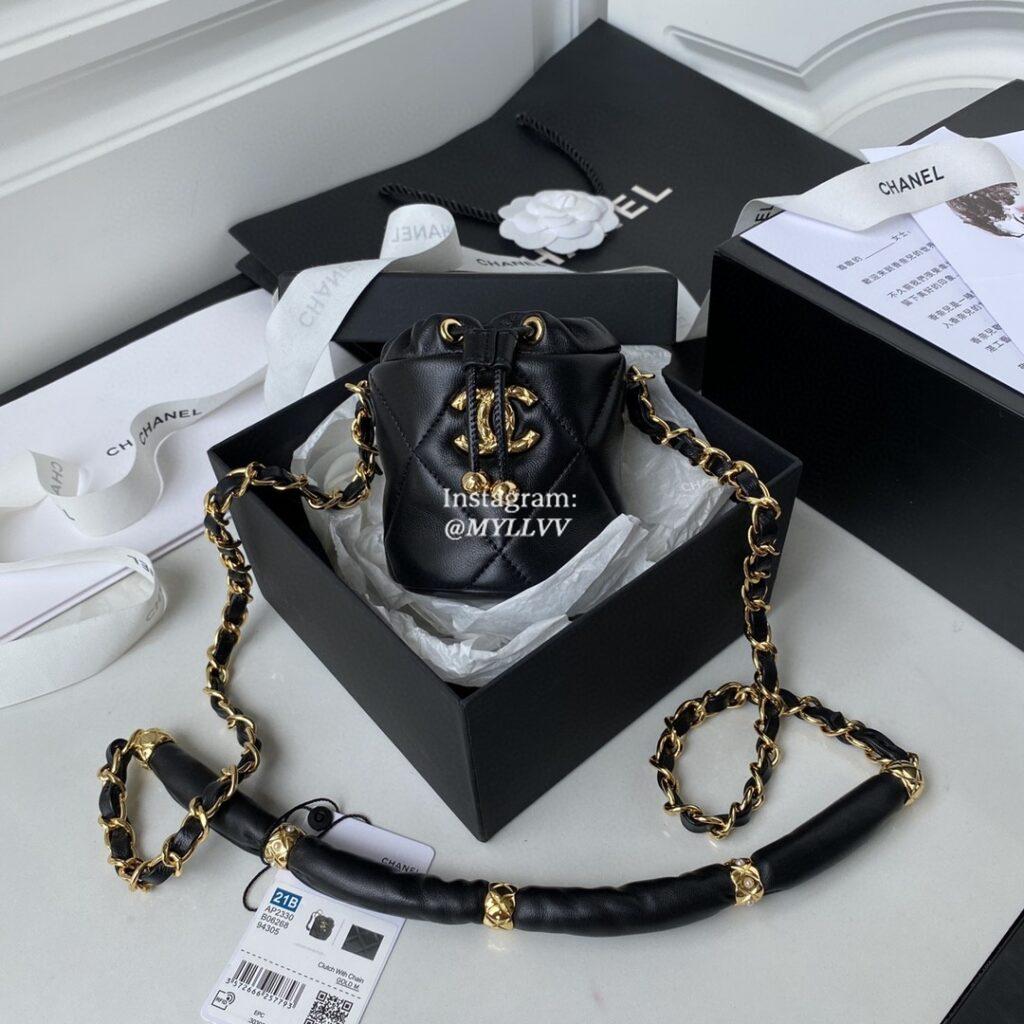 Top Quality Version:MYLLVV » Chanel Diamond Plaid Lambskin Bucket Bag Black With Gold AP2330