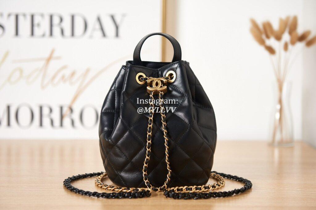 Top Quality Version:MYLLVV » Chanel Diamond Plaid Lambskin Bucket Bag Black With Gold AS3211