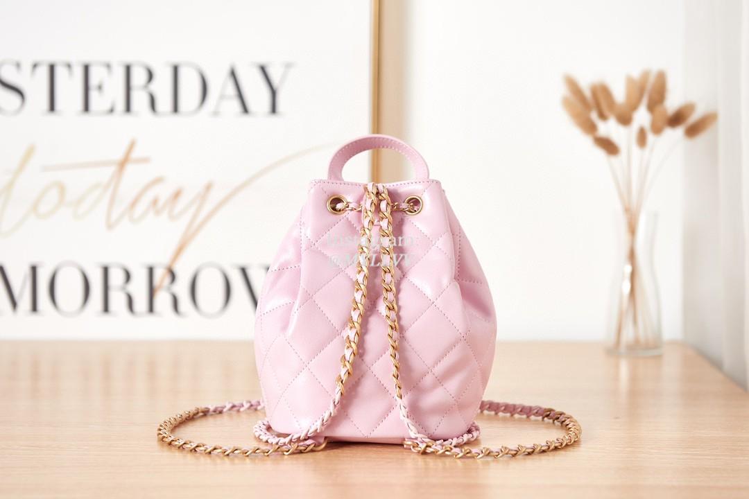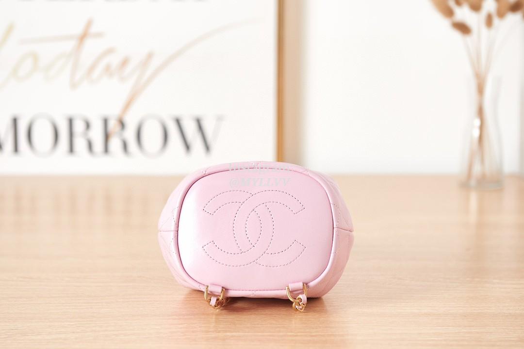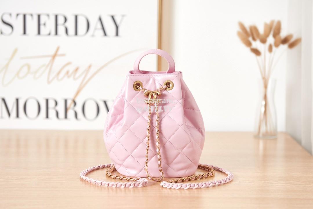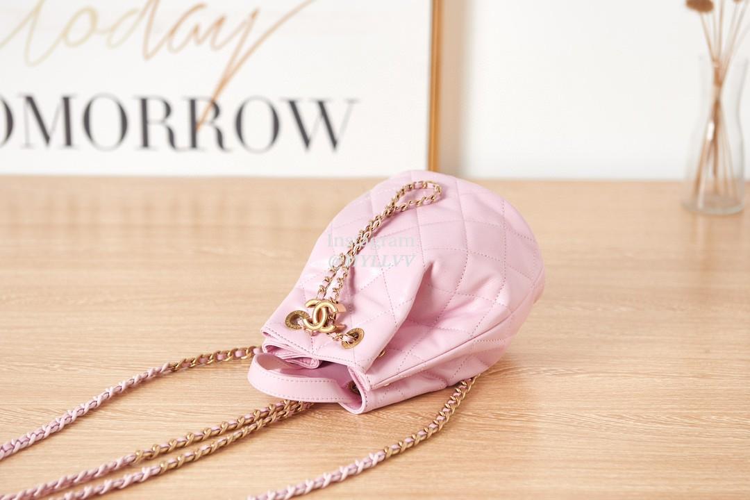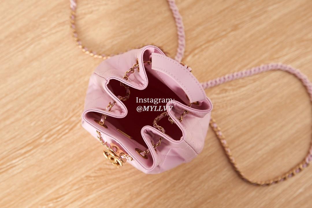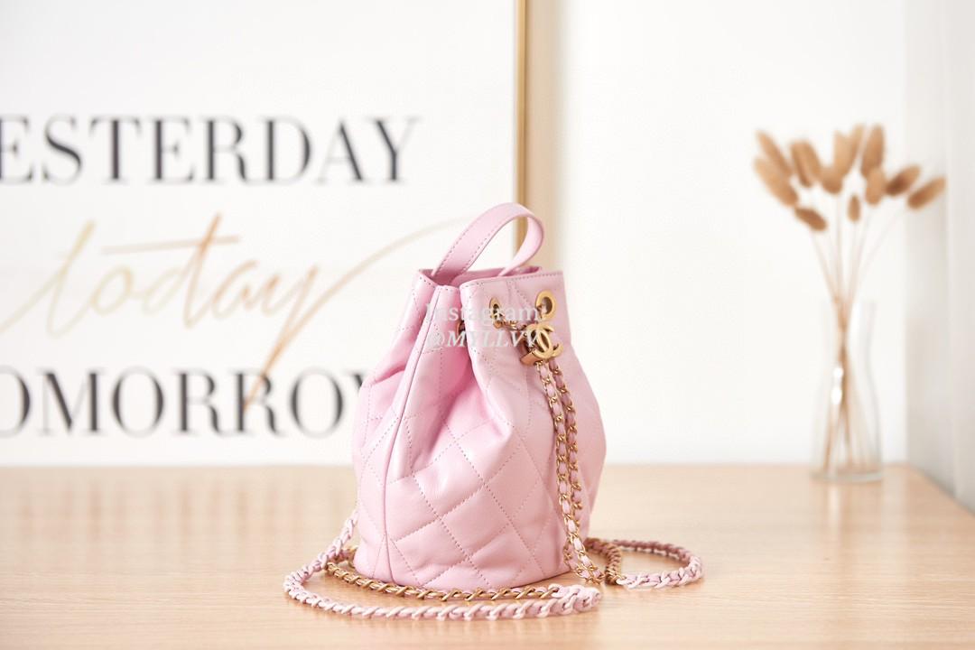 Dimension: 20.0 × 14.0 × 12.0 cm Top Quality Version:MYLLVV » Chanel Diamond Plaid Lambskin Bucket Bag Pink With Gold AS3211