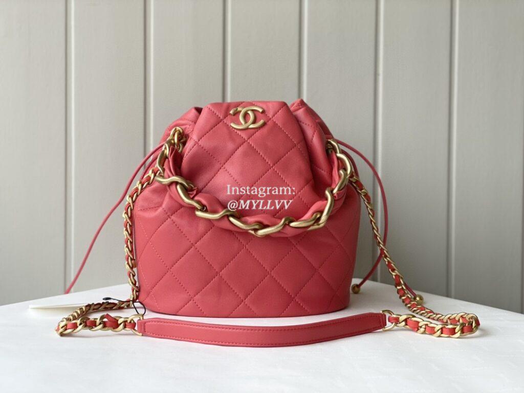 Top Quality Version:MYLLVV » Chanel Diamond Plaid Lambskin Bucket Bag Red With Gold AS2391