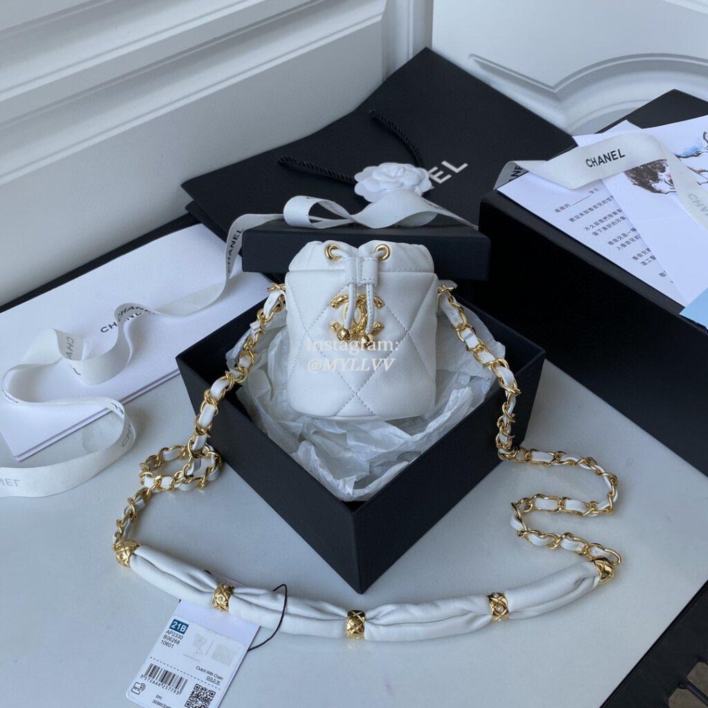 Top Quality Version:MYLLVV » Chanel Diamond Plaid Lambskin Bucket Bag White With Gold AP2330