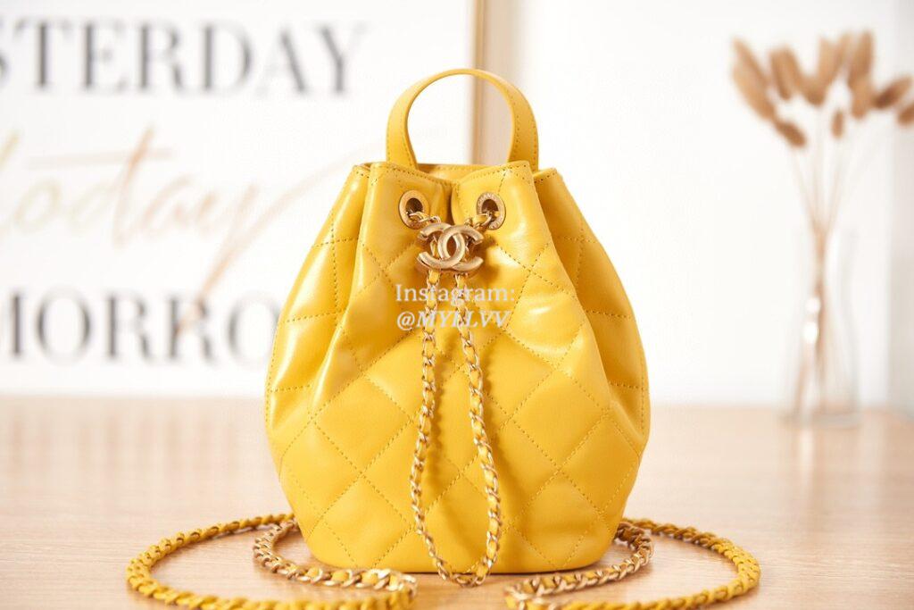 Top Quality Version:MYLLVV » Chanel Diamond Plaid Lambskin Bucket Bag Yellow With Gold AS3211