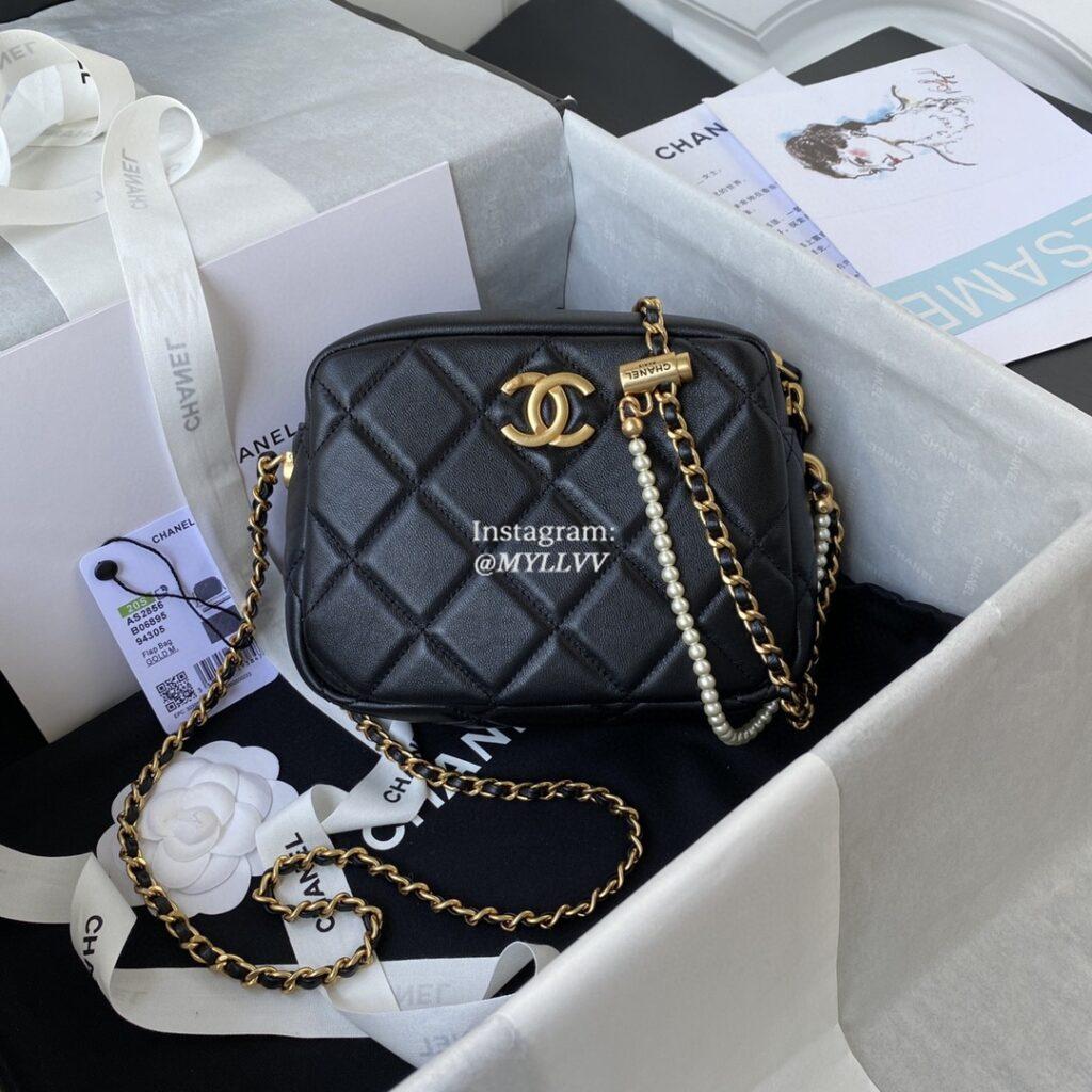 Top Quality Version:MYLLVV » Chanel Diamond Plaid Lambskin Camera Bag Black With Gold AS2856