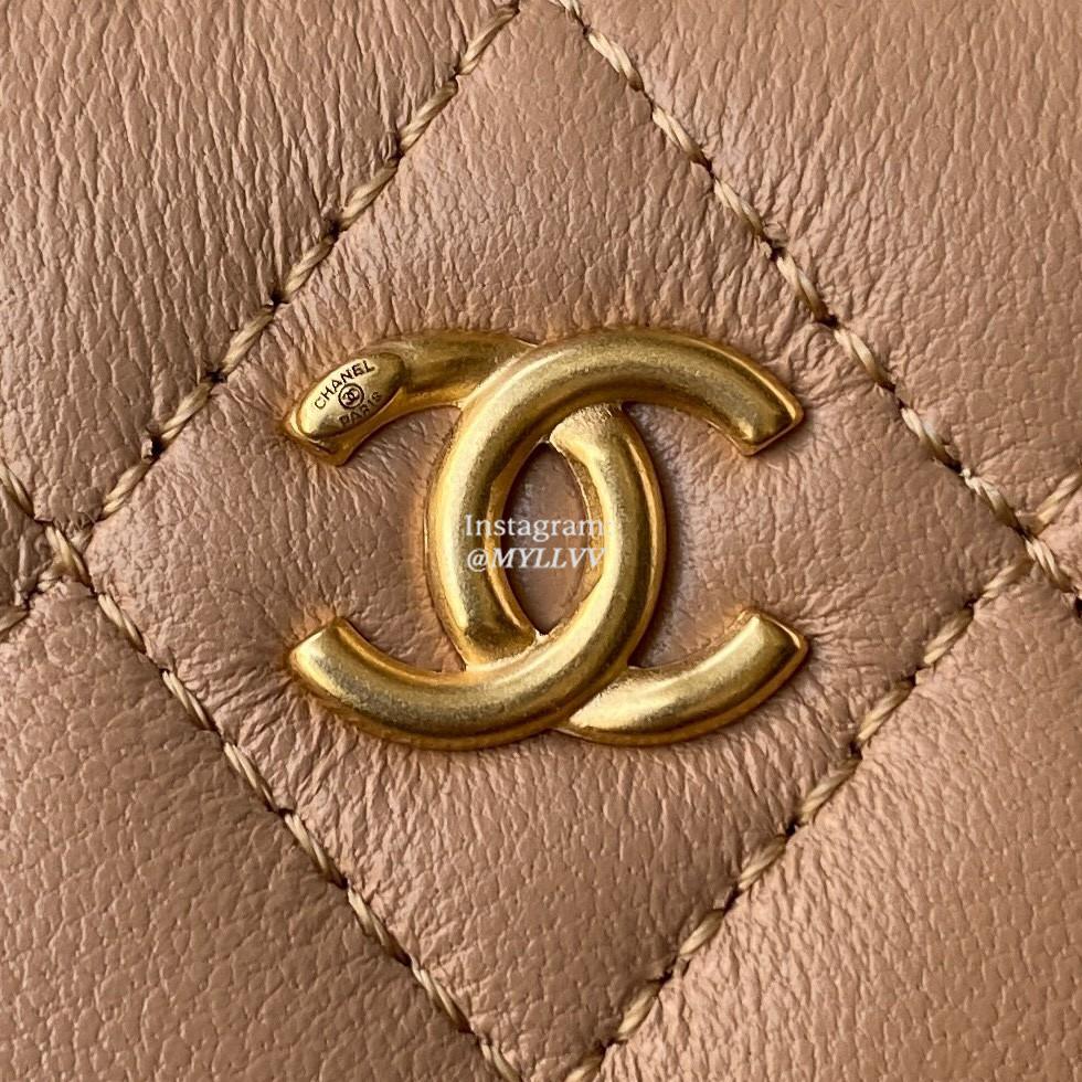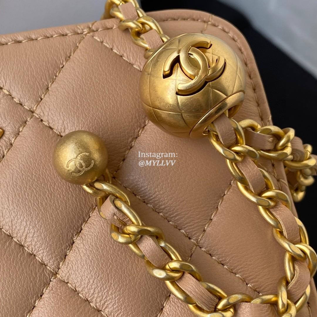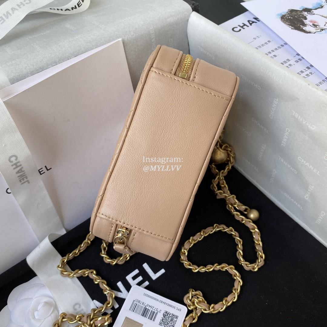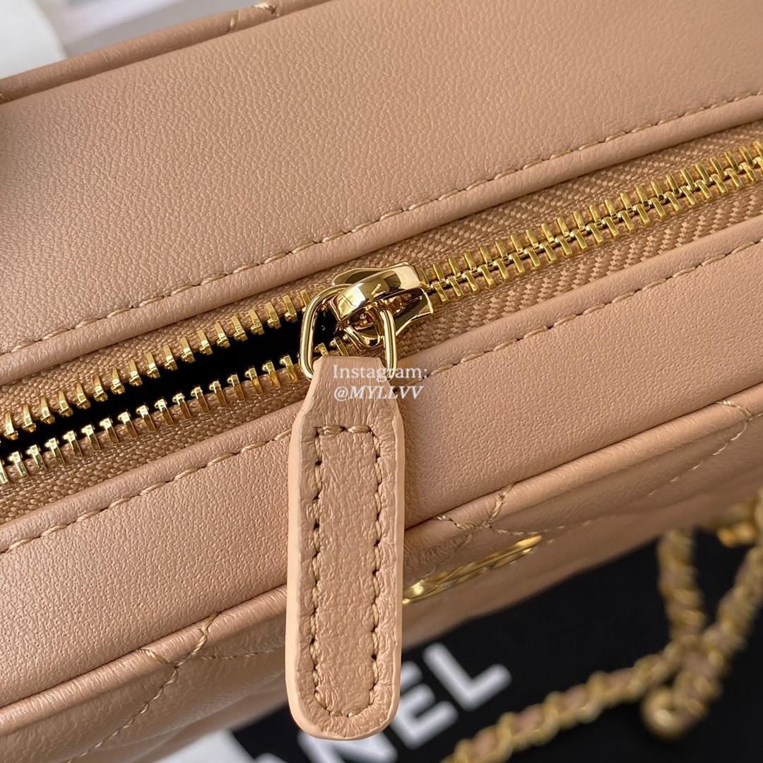Top Quality Version:MYLLVV » Chanel Diamond Plaid Lambskin Camera Chain Bag Apricot With Gold AS2463