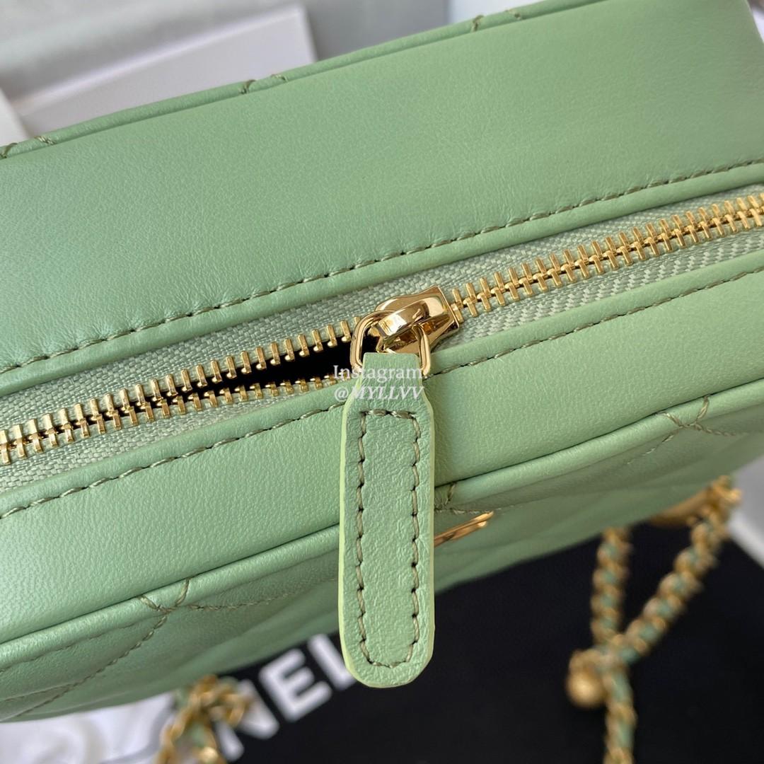 Top Quality Version:MYLLVV » Chanel Diamond Plaid Lambskin Camera Chain Bag Green With Gold AS2463
