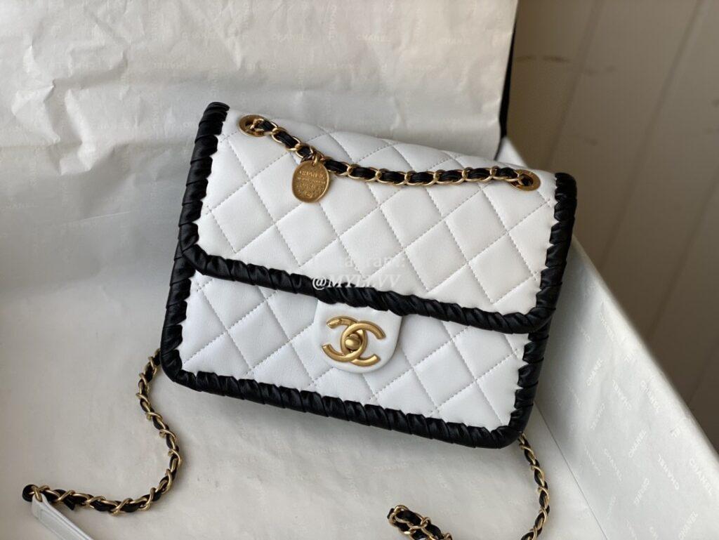 Top Quality Version:MYLLVV » Chanel Diamond Plaid Lambskin Chain Bag White With Gold AS2496