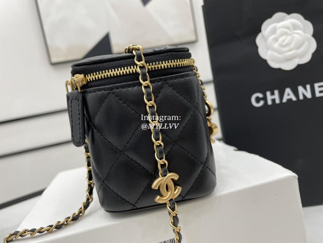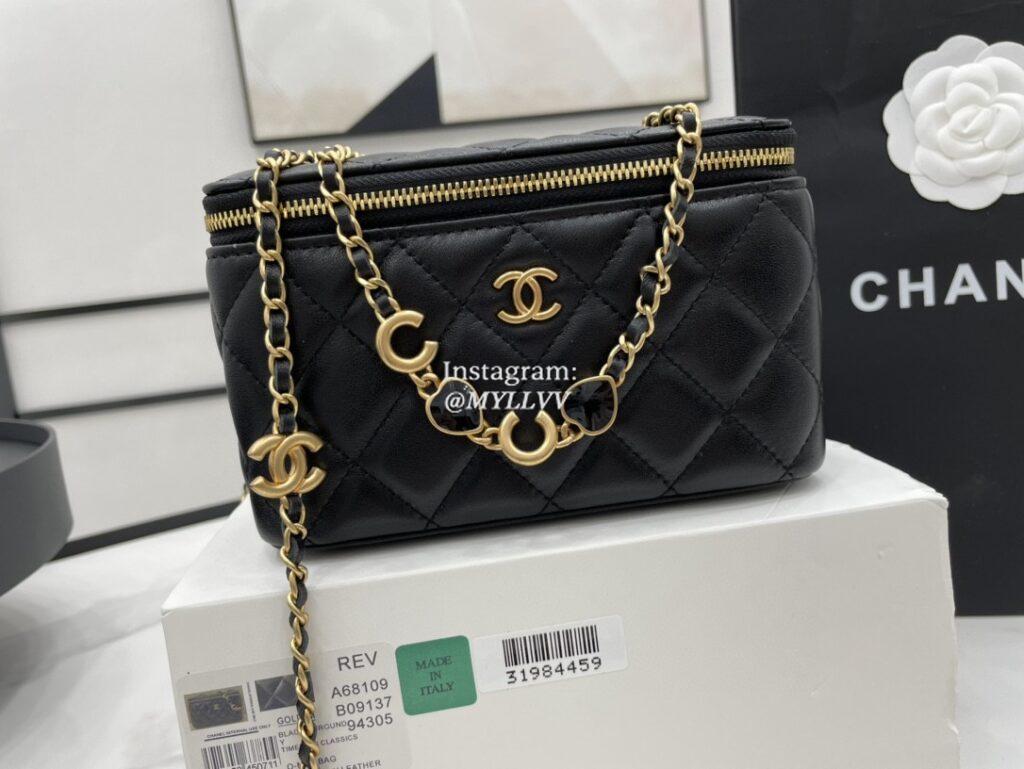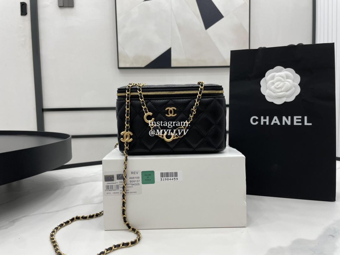 Top Quality Version:MYLLVV » Chanel Diamond Plaid Lambskin Chain Box Bag Black With Gold A68109