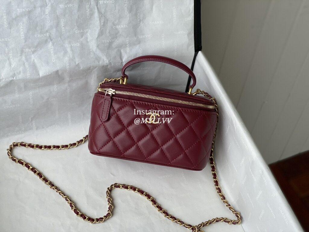 Top Quality Version:MYLLVV » Chanel Diamond Plaid Lambskin Chain Box Bag Red With Gold 81118