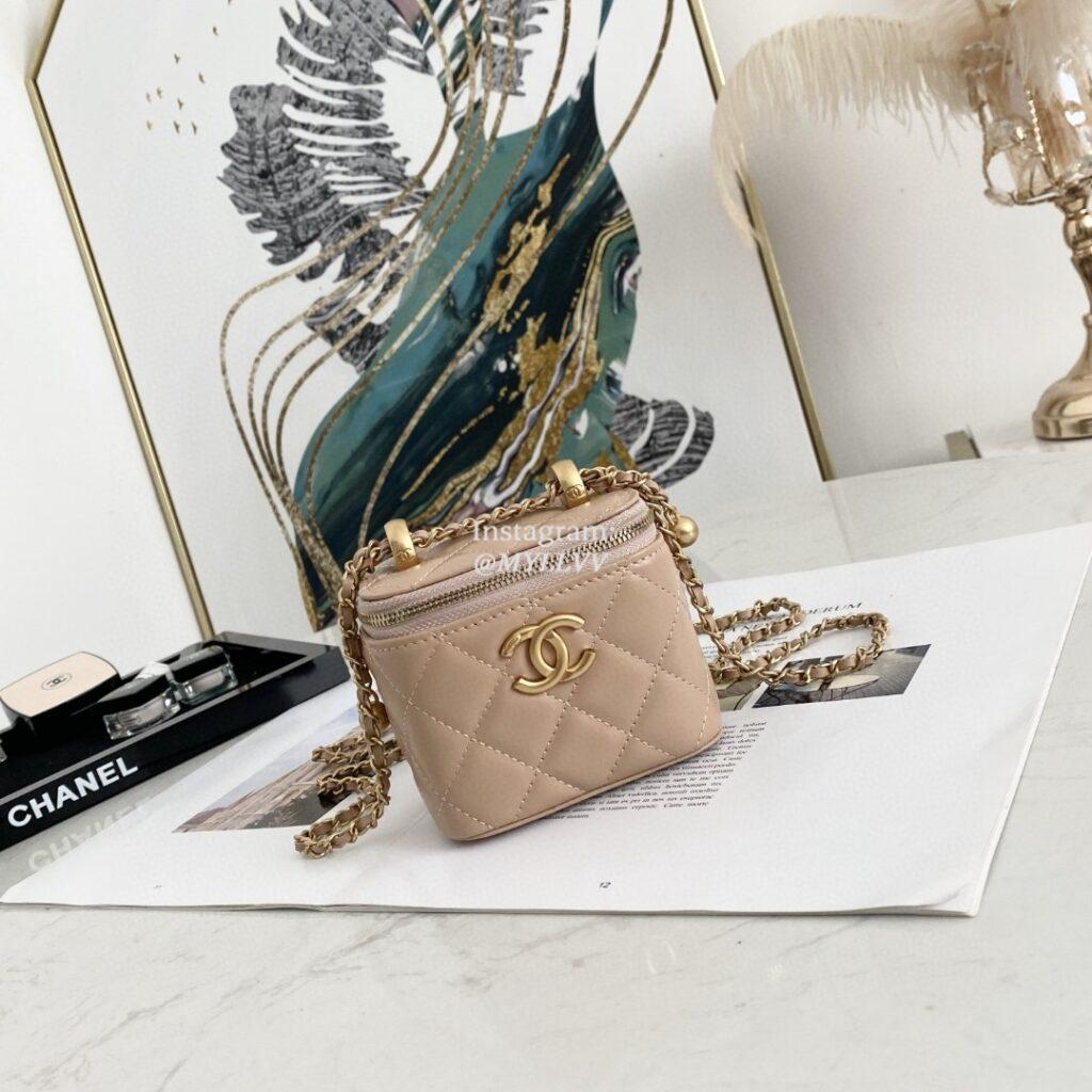 Top Quality Version:MYLLVV » Chanel Diamond Plaid Lambskin Chain Cosmetic Bag Apricot With Gold 81116