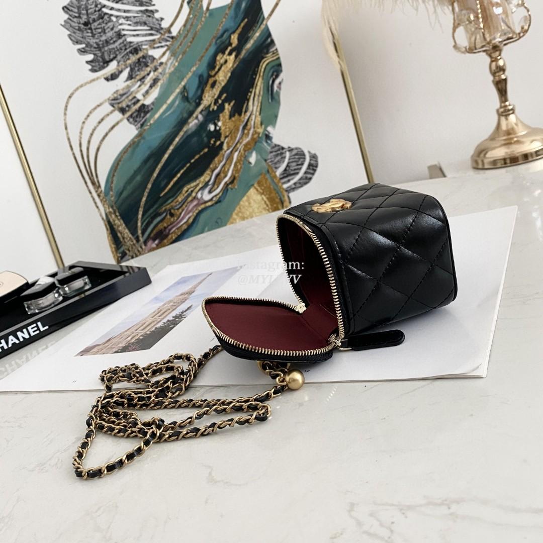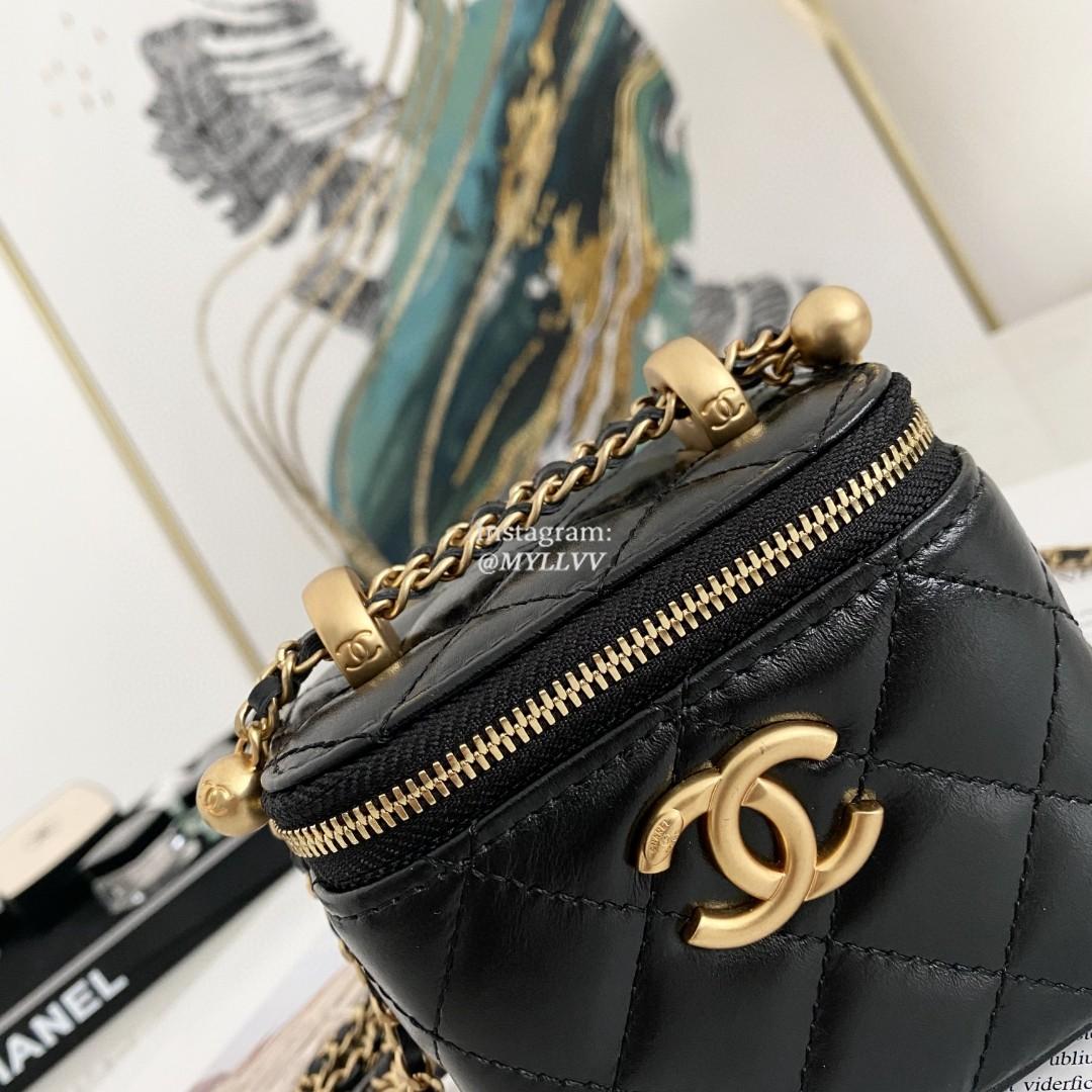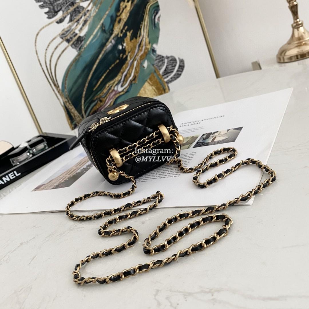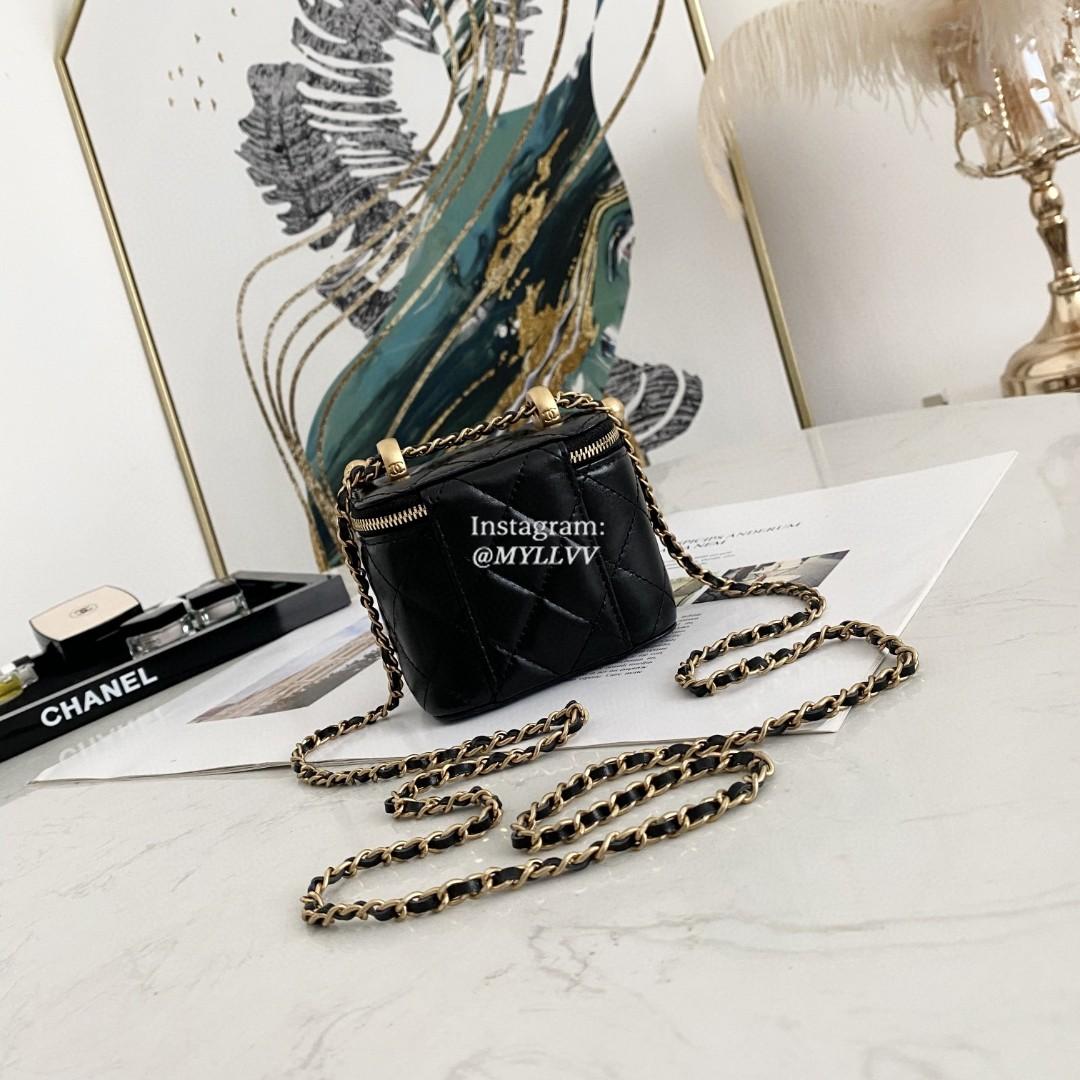 Top Quality Version:MYLLVV » Chanel Diamond Plaid Lambskin Chain Cosmetic Bag Black With Gold 81116
