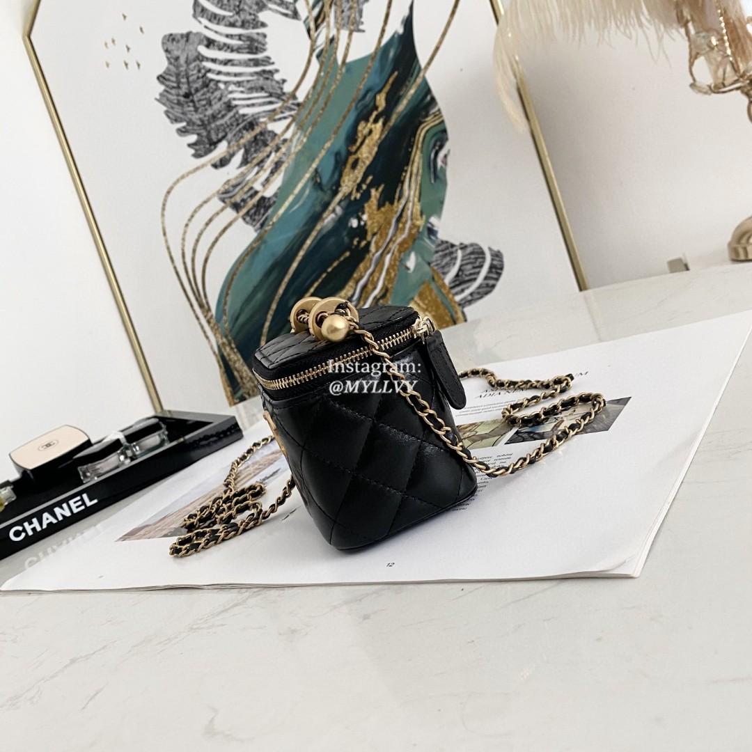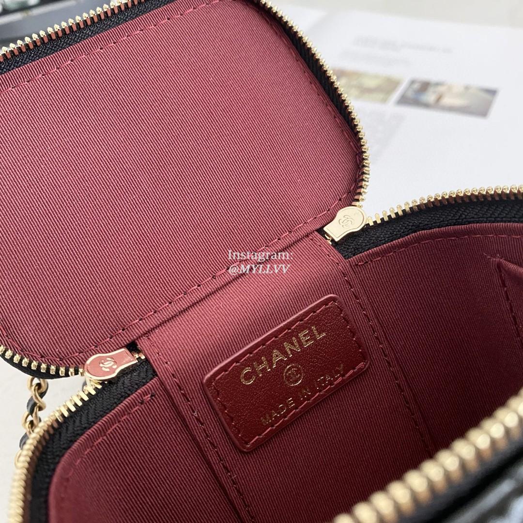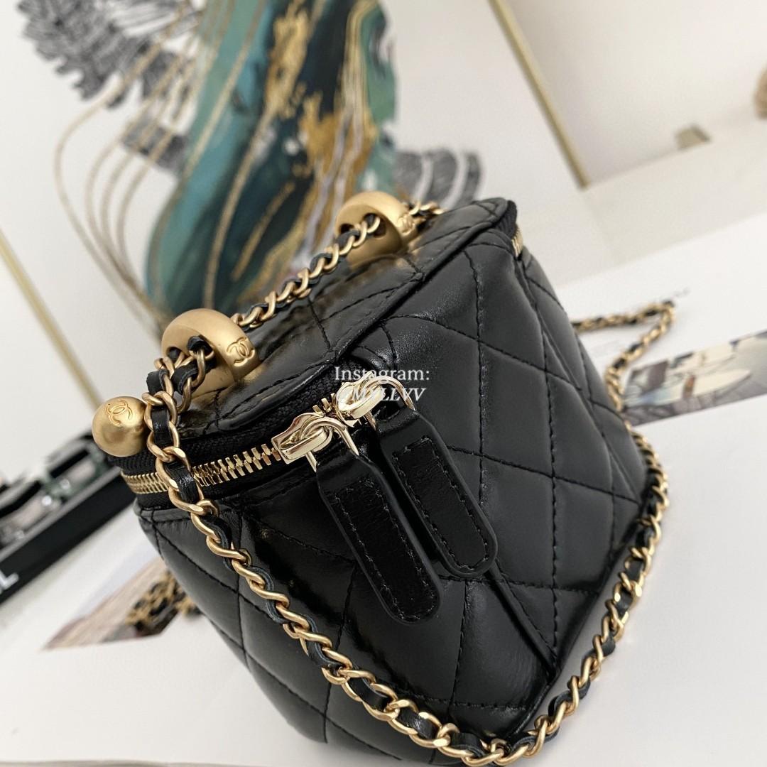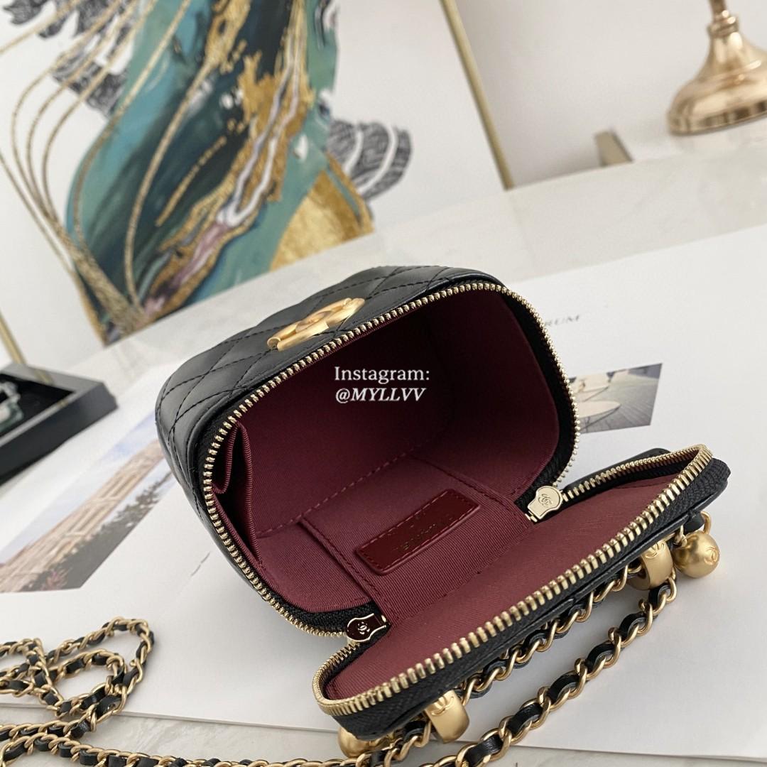 Top Quality Version:MYLLVV » Chanel Diamond Plaid Lambskin Chain Cosmetic Bag Black With Gold 81116