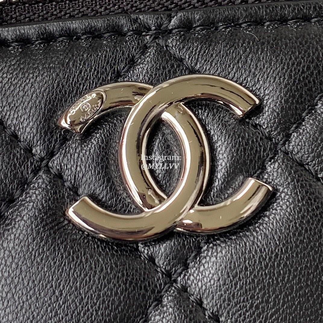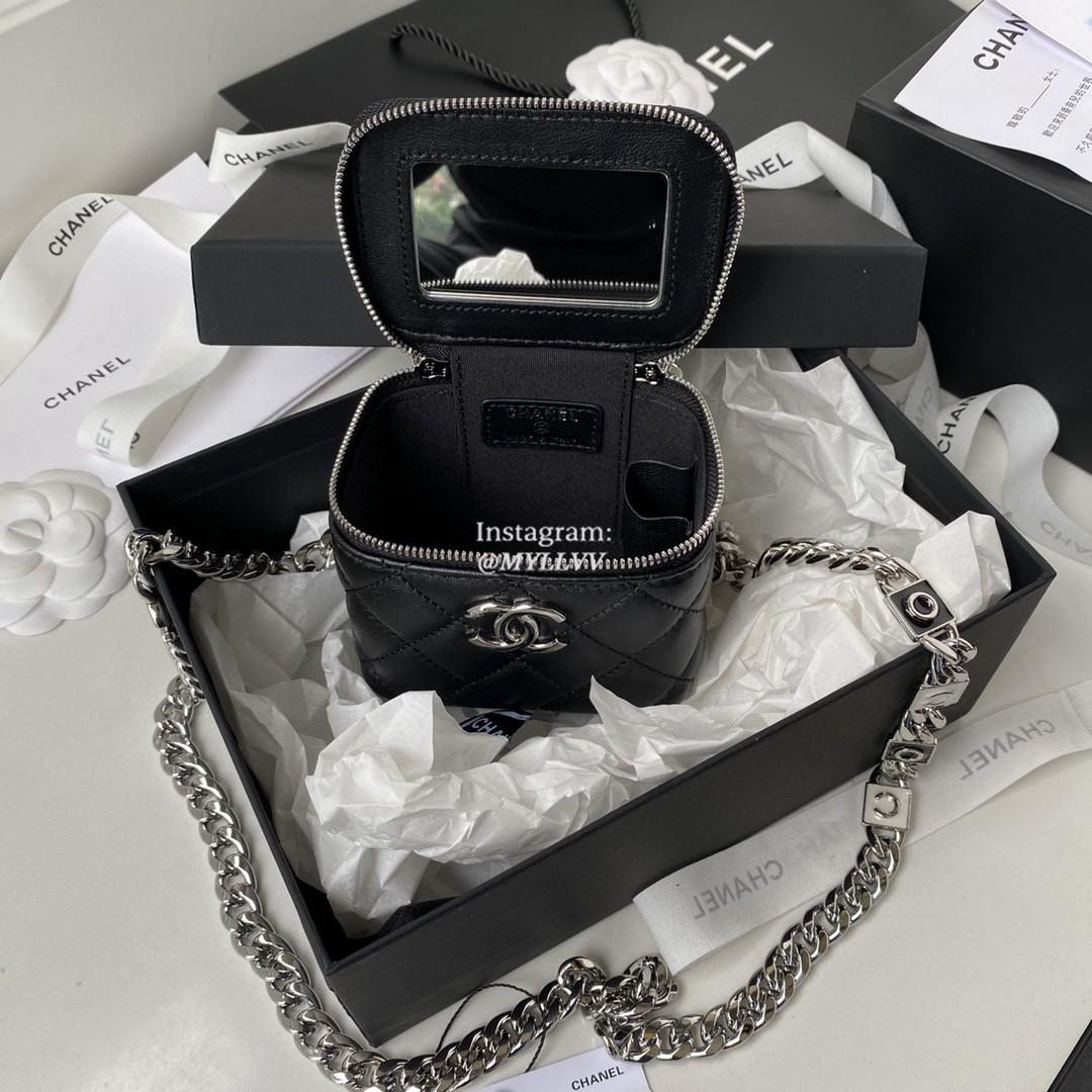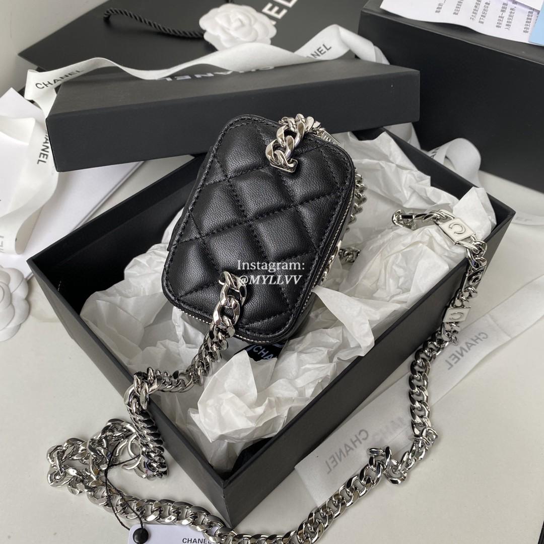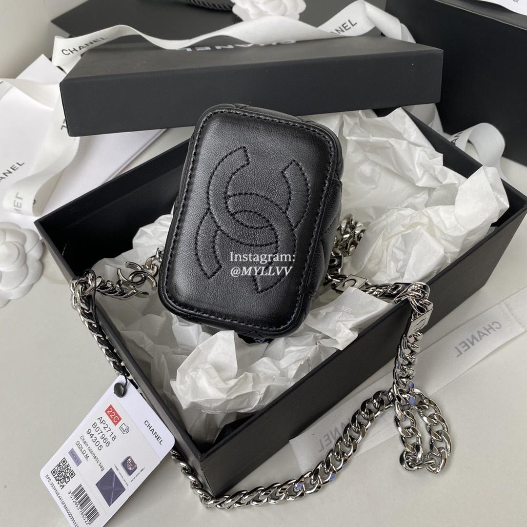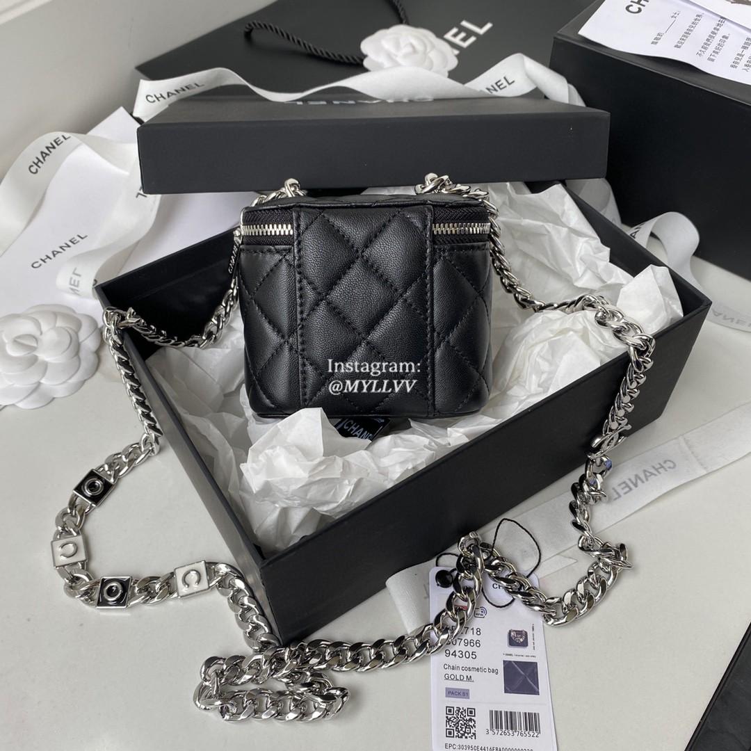 Dimension: 12.0 cm Top Quality Version:MYLLVV » Chanel Diamond Plaid Lambskin Chain Cosmetic Bag Black With Sliver AP2718