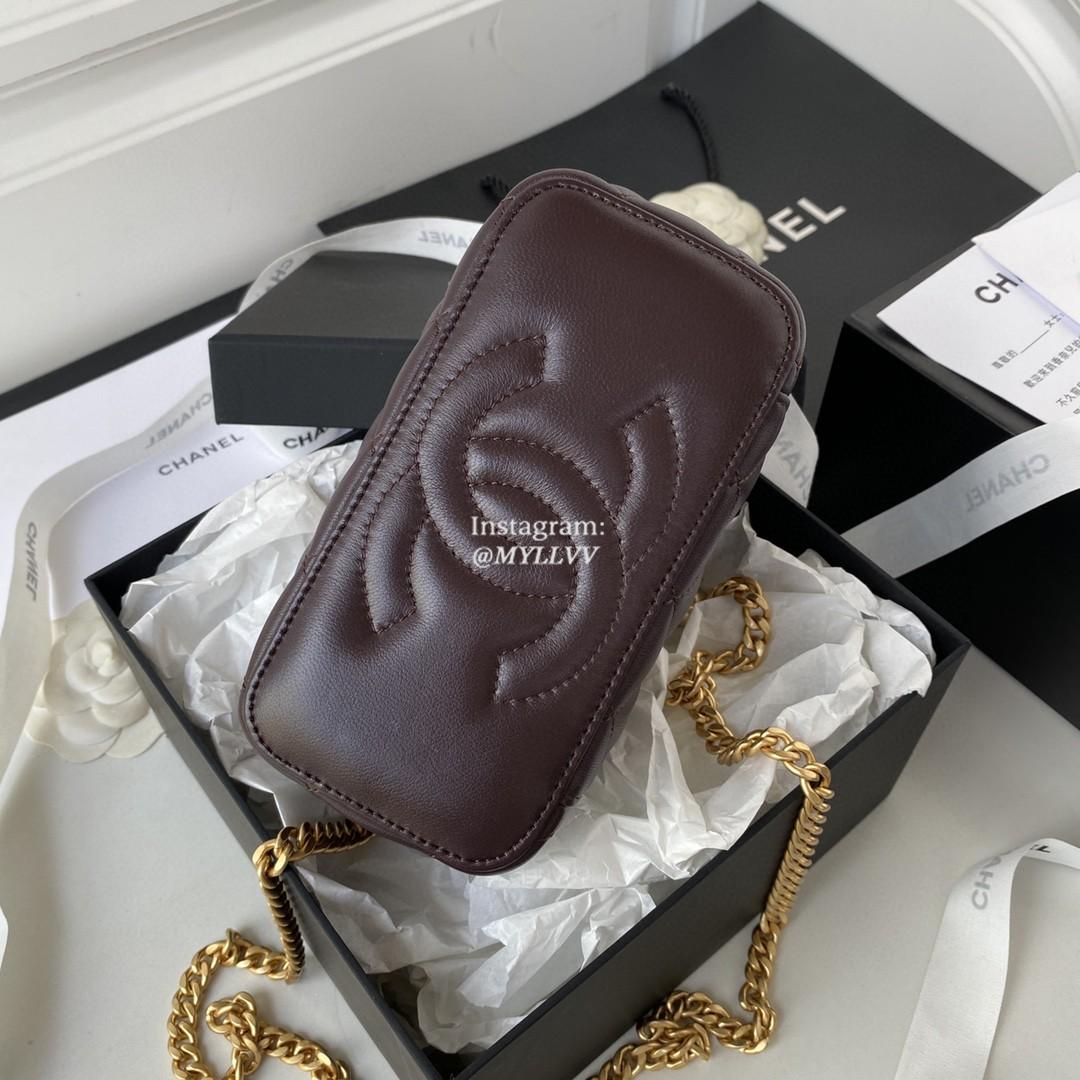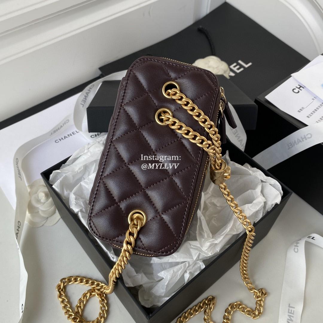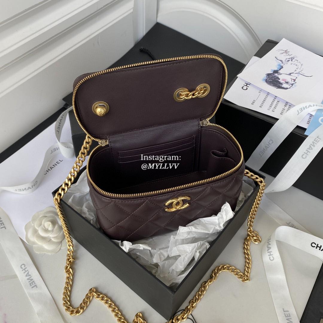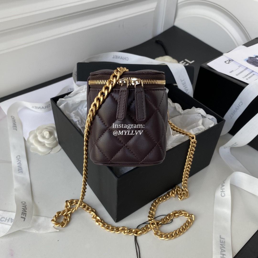Top Quality Version:MYLLVV » Chanel Diamond Plaid Lambskin Chain Cosmetic Bag Dark Wine Red With Gold AP3044