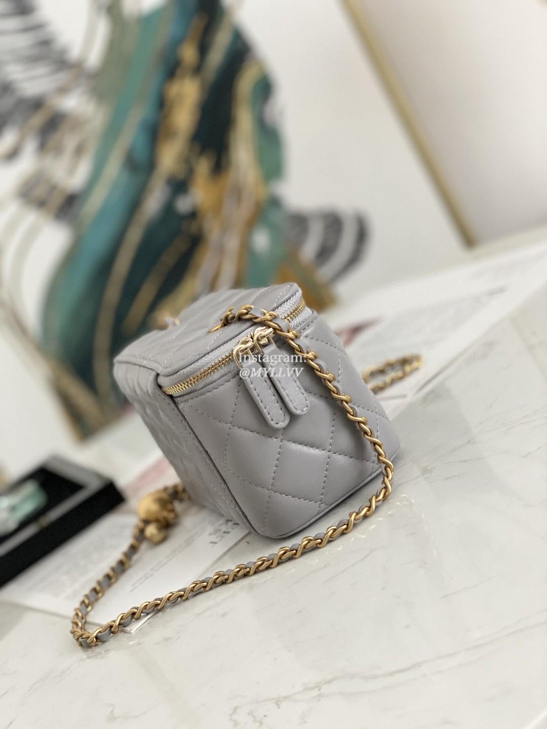 Top Quality Version:MYLLVV » Chanel Diamond Plaid Lambskin Chain Cosmetic Bag Grey With Gold 81138