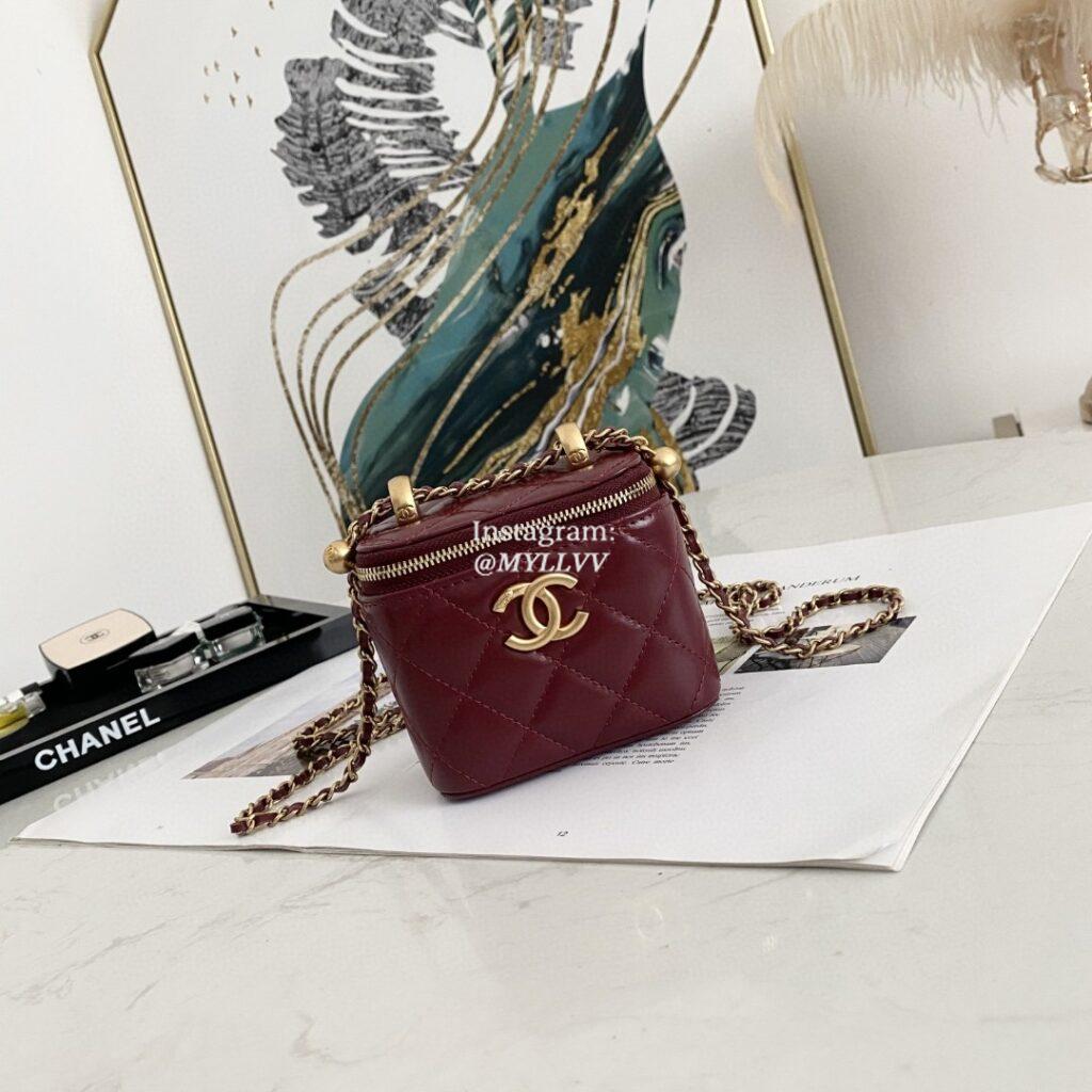 Top Quality Version:MYLLVV » Chanel Diamond Plaid Lambskin Chain Cosmetic Bag Red With Gold 81116