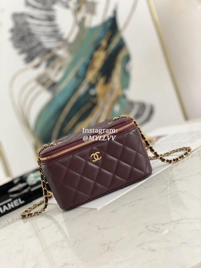 Top Quality Version:MYLLVV » Chanel Diamond Plaid Lambskin Chain Cosmetic Bag Wine Red With Gold 81138