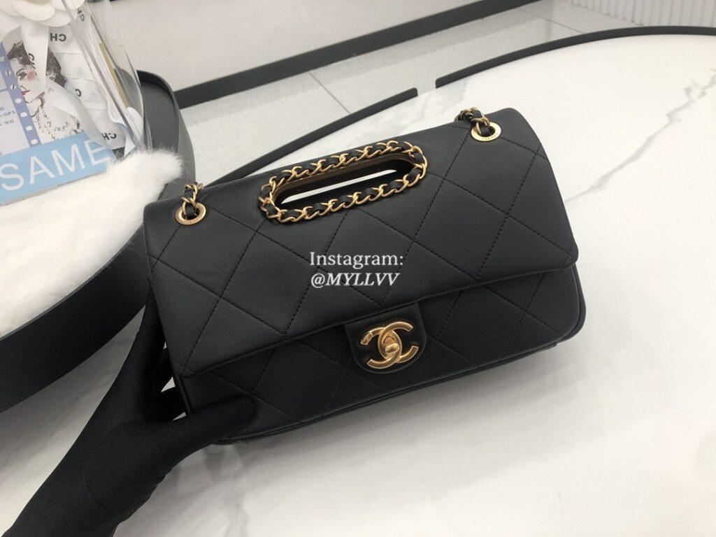 Top Quality Version:MYLLVV » Chanel Diamond Plaid Lambskin Chain Flap Bag Black With Gold AS1466