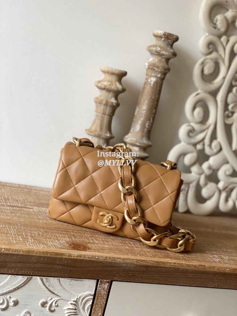Top Quality Version:MYLLVV » Chanel Diamond Plaid Lambskin Chain Flap Bag Caramel With Gold 3214