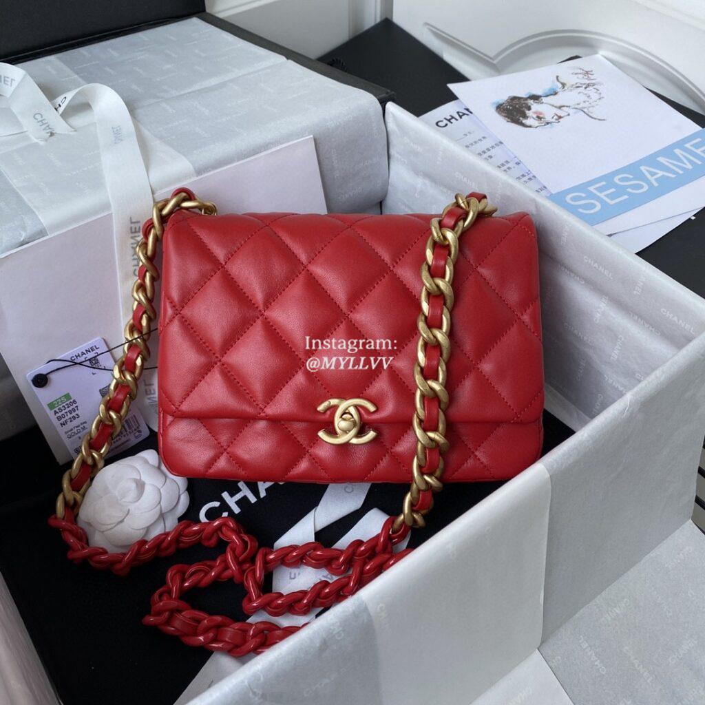 Top Quality Version:MYLLVV » Chanel Diamond Plaid Lambskin Chain Flap Bag Red With Gold AS3206