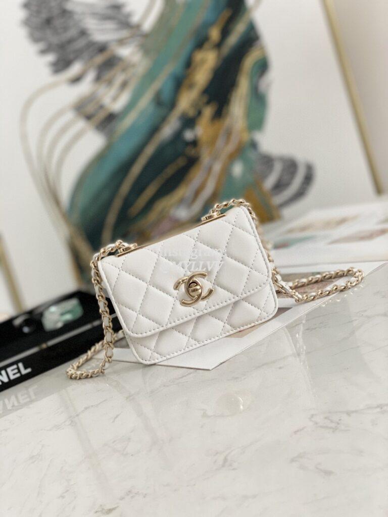 Top Quality Version:MYLLVV » Chanel Diamond Plaid Lambskin Chain Flap Bag White With Gold 82768