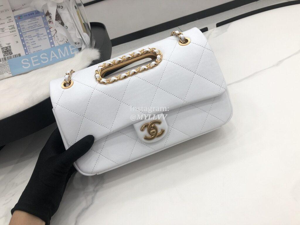 Top Quality Version:MYLLVV » Chanel Diamond Plaid Lambskin Chain Flap Bag White With Gold AS1466
