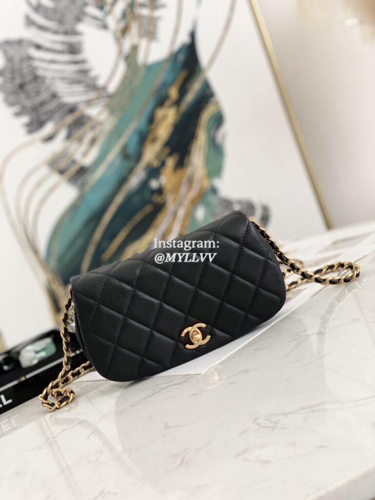 Top Quality Version:MYLLVV » Chanel Diamond Plaid Lambskin Chain Handle Bag Black With Gold Large AP2358