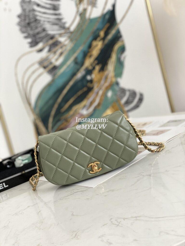 Top Quality Version:MYLLVV » Chanel Diamond Plaid Lambskin Chain Handle Bag Green With Gold Large AP2358