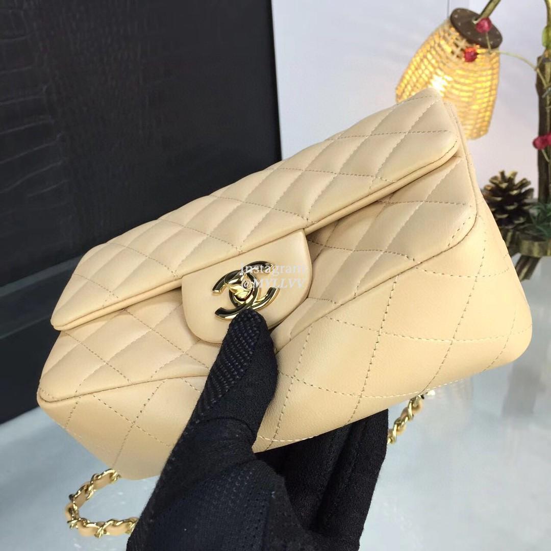 Dimension: 20.0 cm Top Quality Version:MYLLVV » Chanel Diamond Plaid Lambskin Classic Flap Bag Apricot With Gold 5500