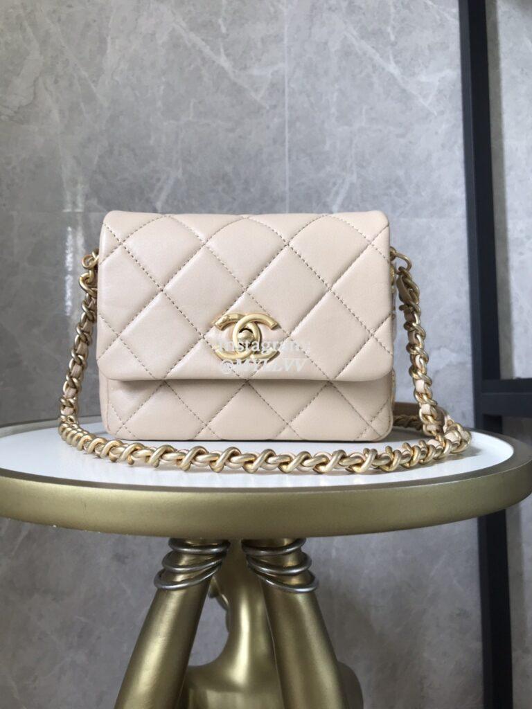 Top Quality Version:MYLLVV » Chanel Diamond Plaid Lambskin Classic Flap Bag Apricot With Gold AS2733