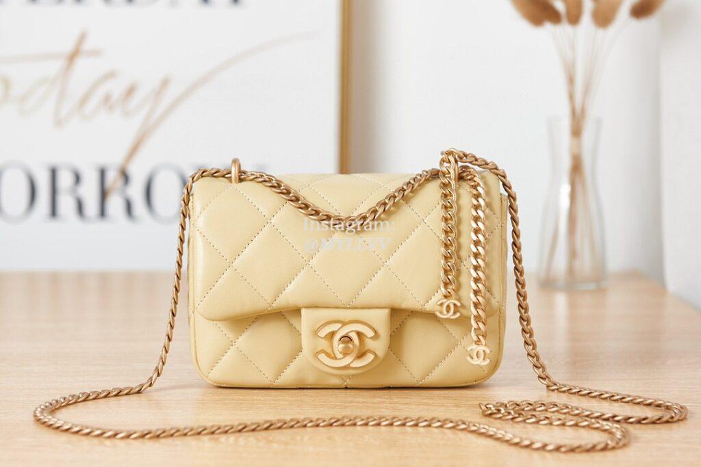 Top Quality Version:MYLLVV » Chanel Diamond Plaid Lambskin Classic Flap Bag Apricot With Gold AS3113