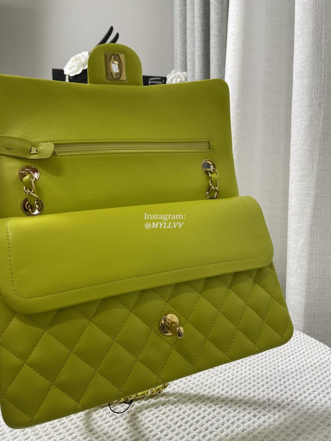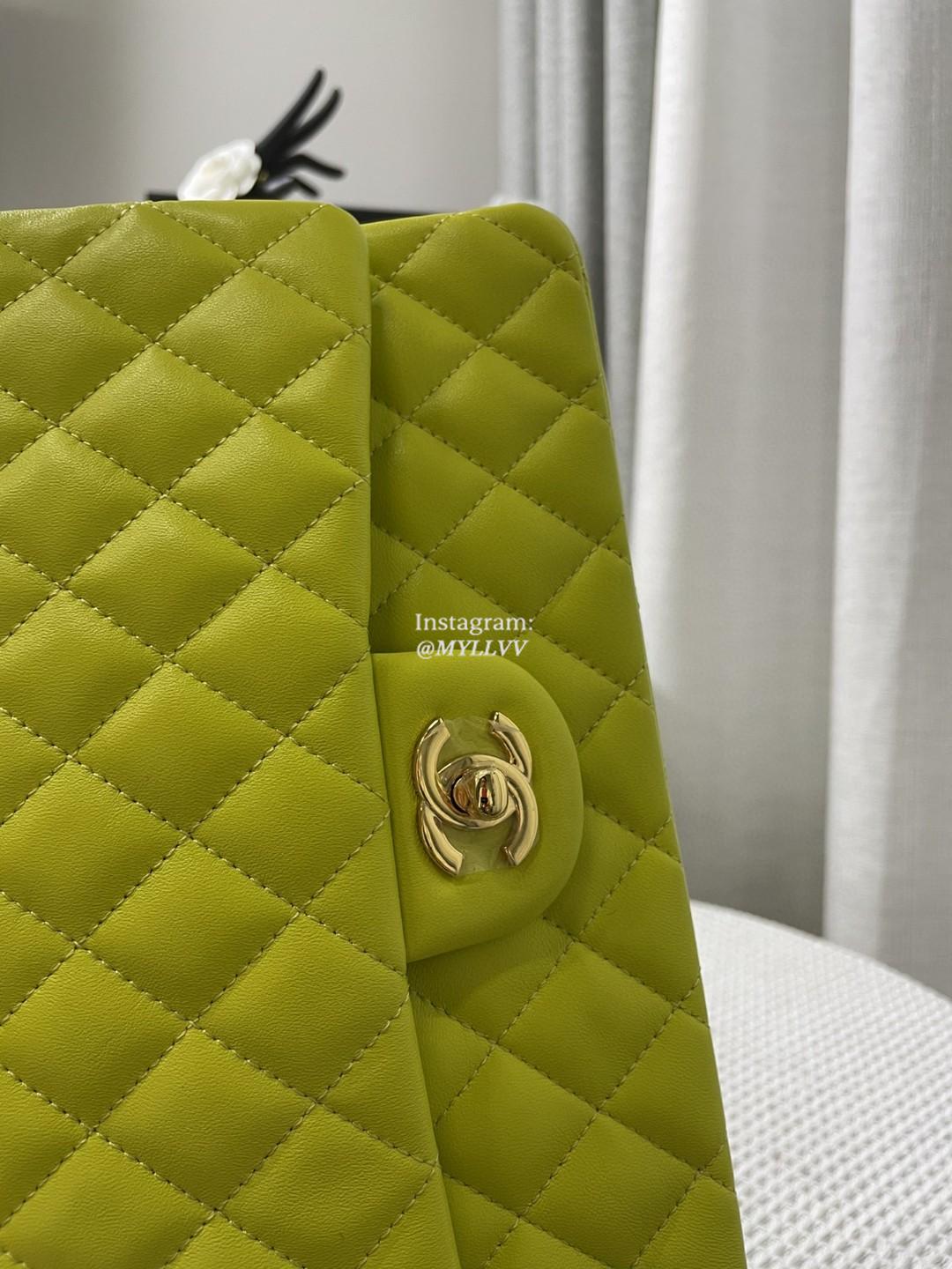 Top Quality Version:MYLLVV » Chanel Diamond Plaid Lambskin Classic Flap Bag Fluorescent Green With Gold 01112