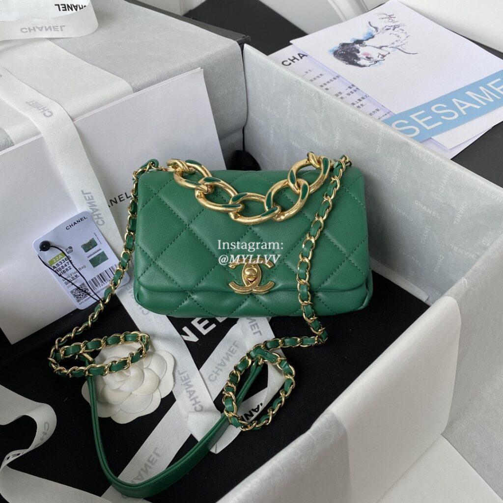 Top Quality Version:MYLLVV » Chanel Diamond Plaid Lambskin Classic Flap Bag Green With Gold AS3365