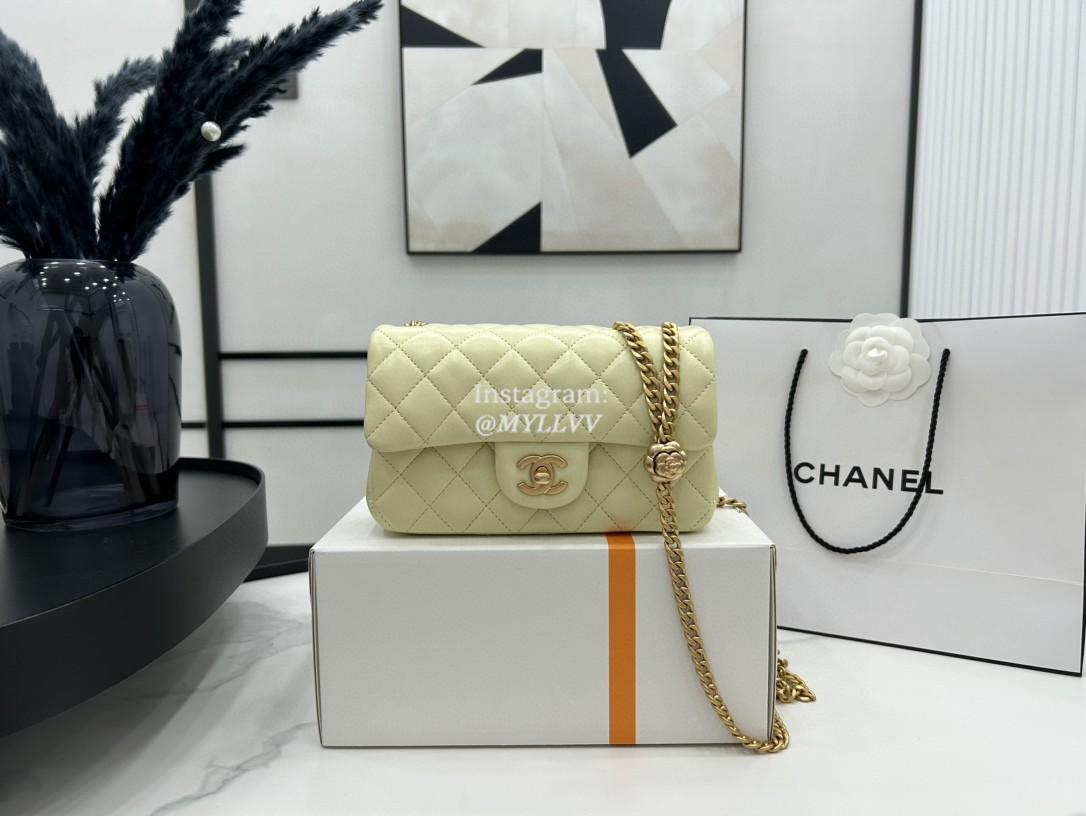 Top Quality Version:MYLLVV » Chanel Diamond Plaid Lambskin Classic Flap Bag Light Green With Gold AS4041